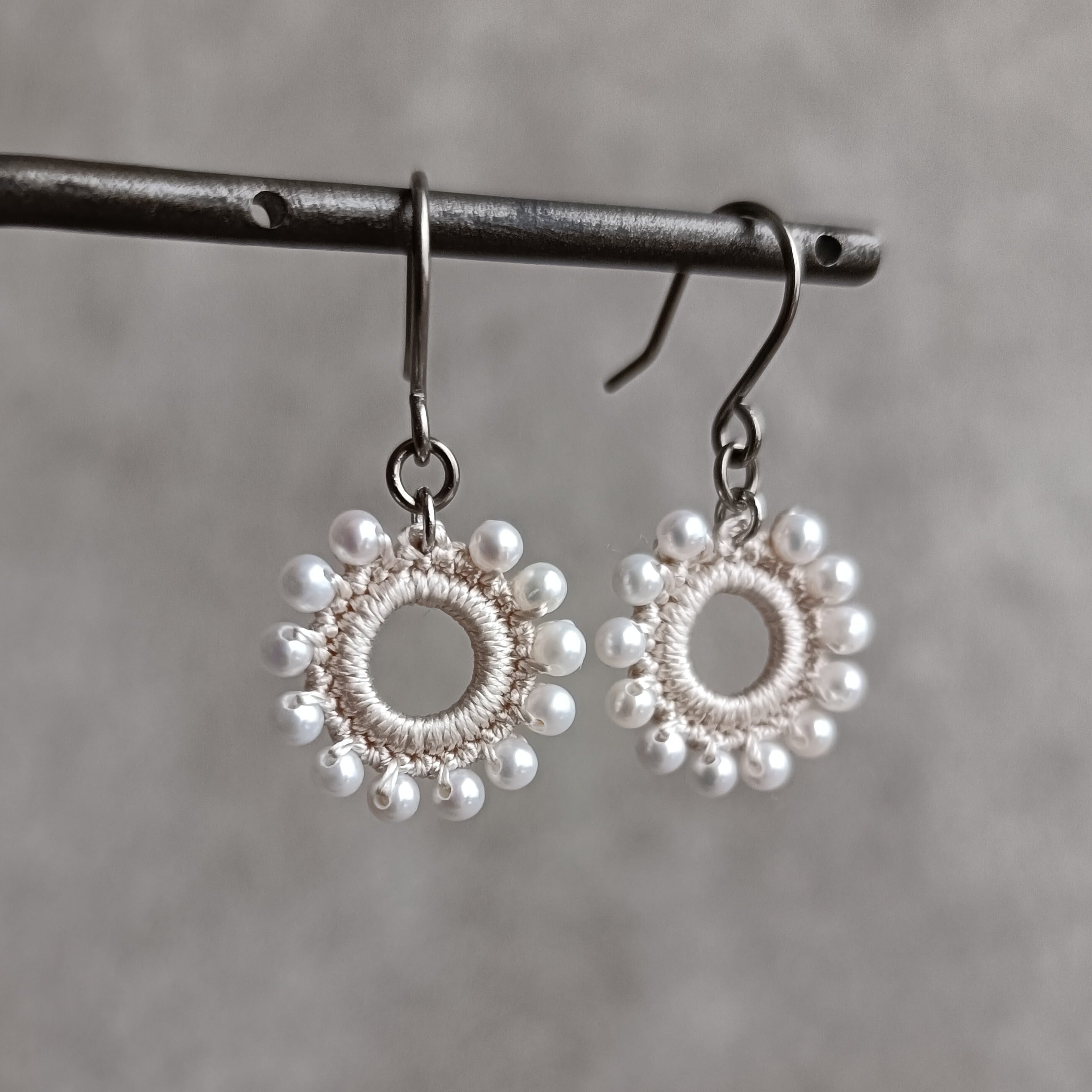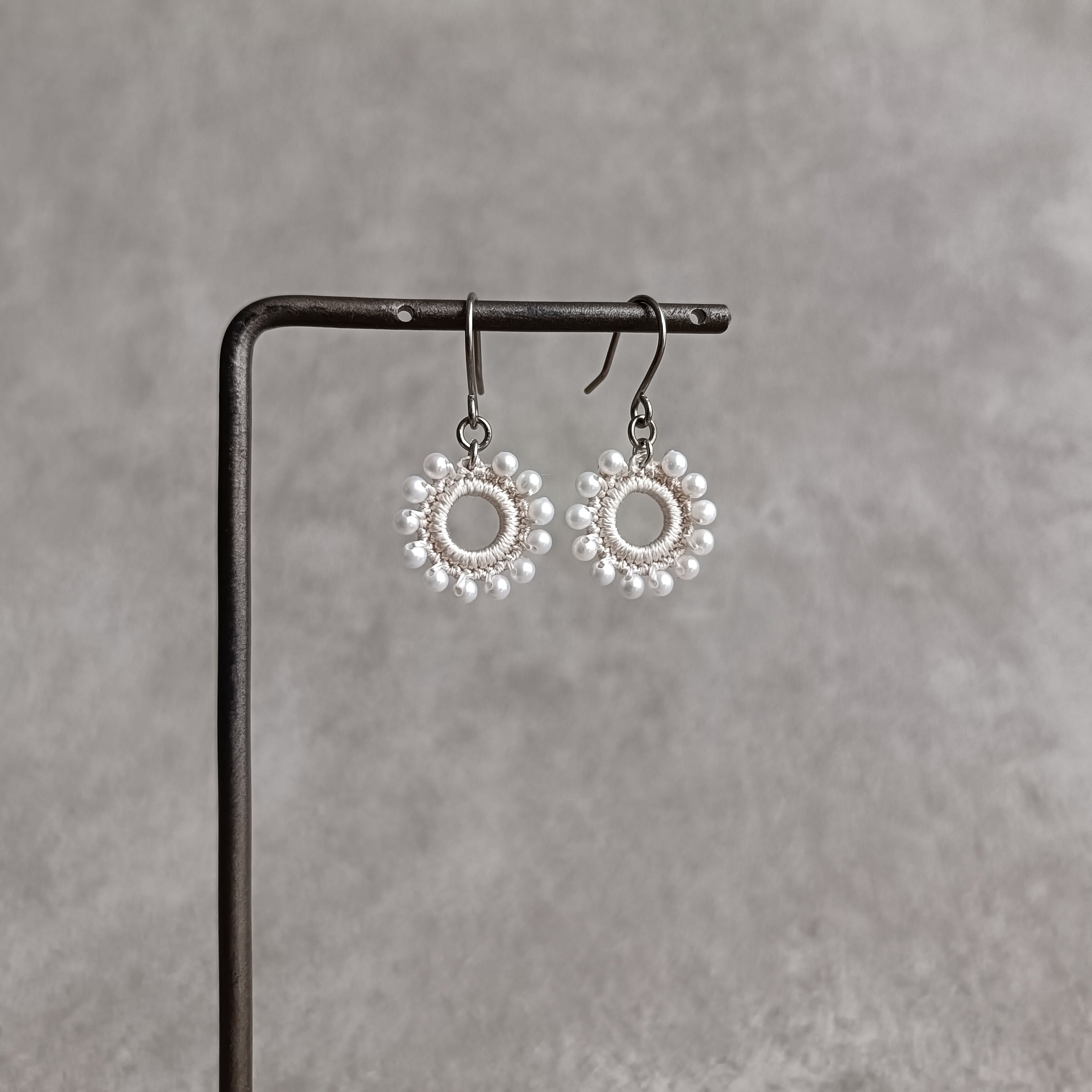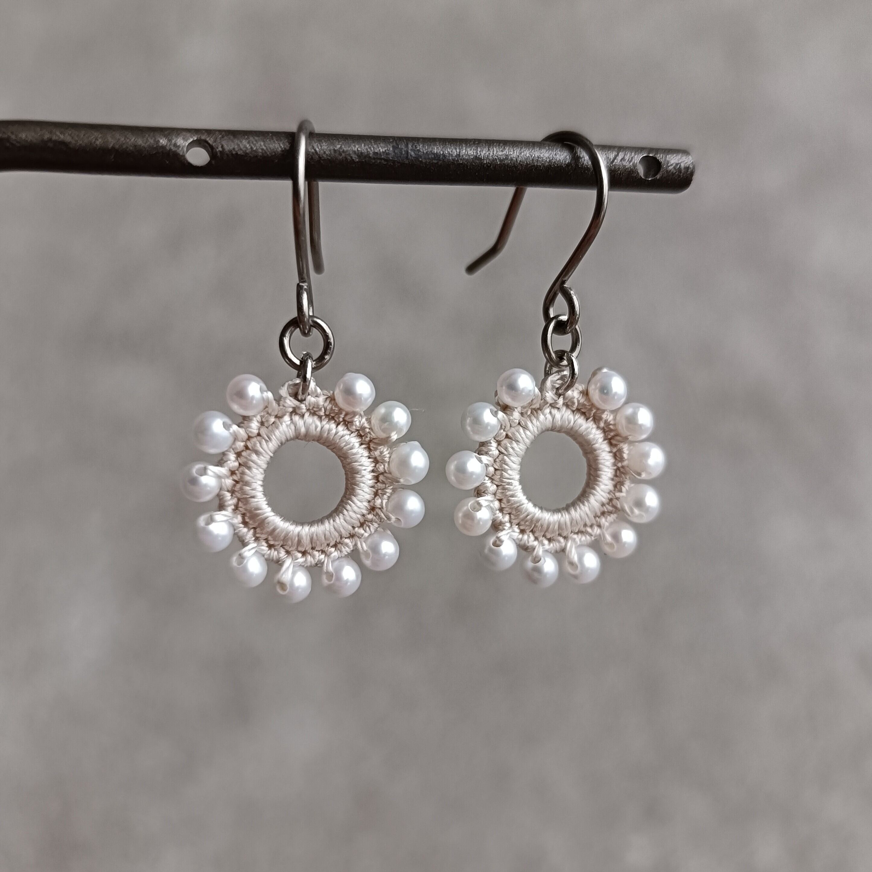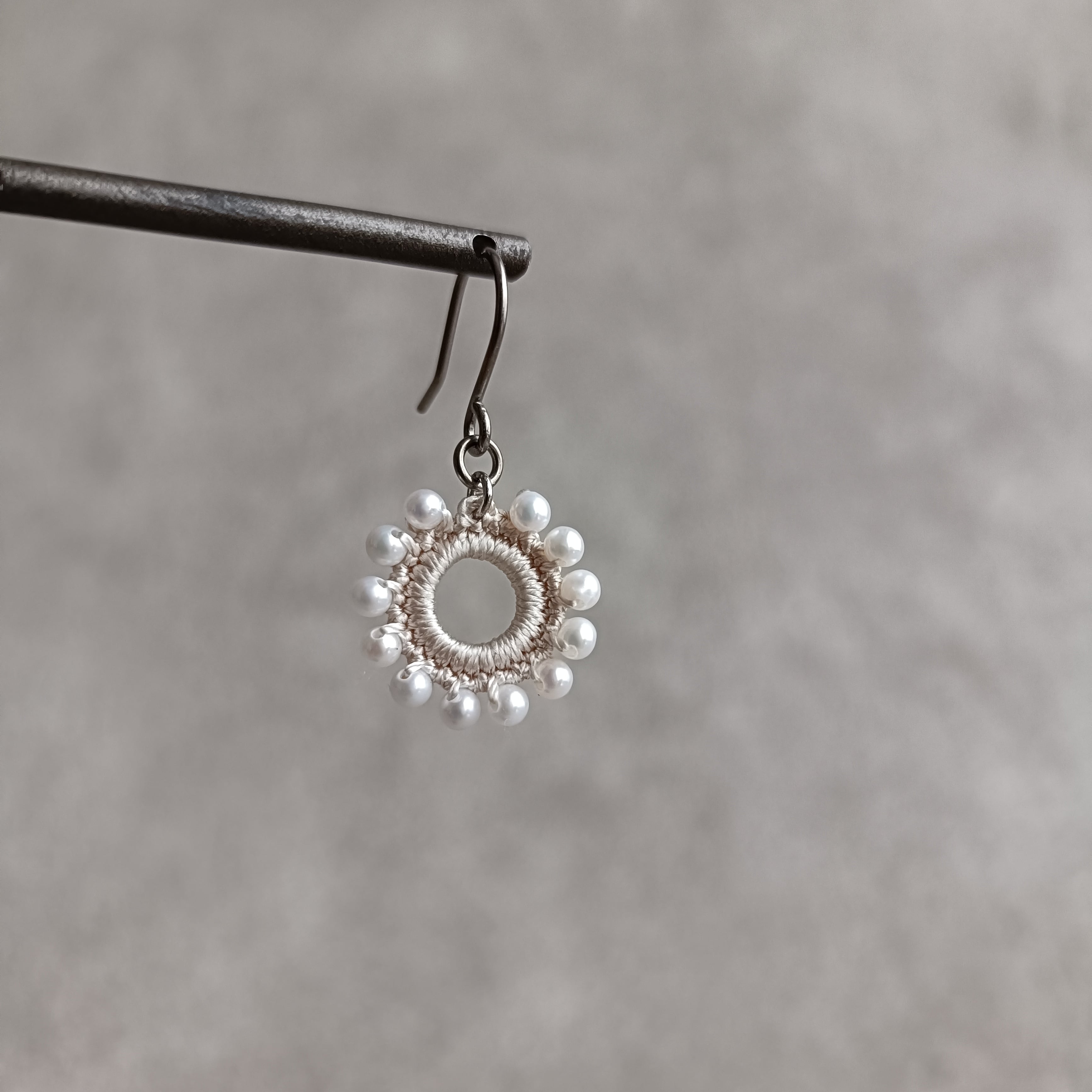 約2.5mmの上質な淡水パールを編み込んだ耳飾り。