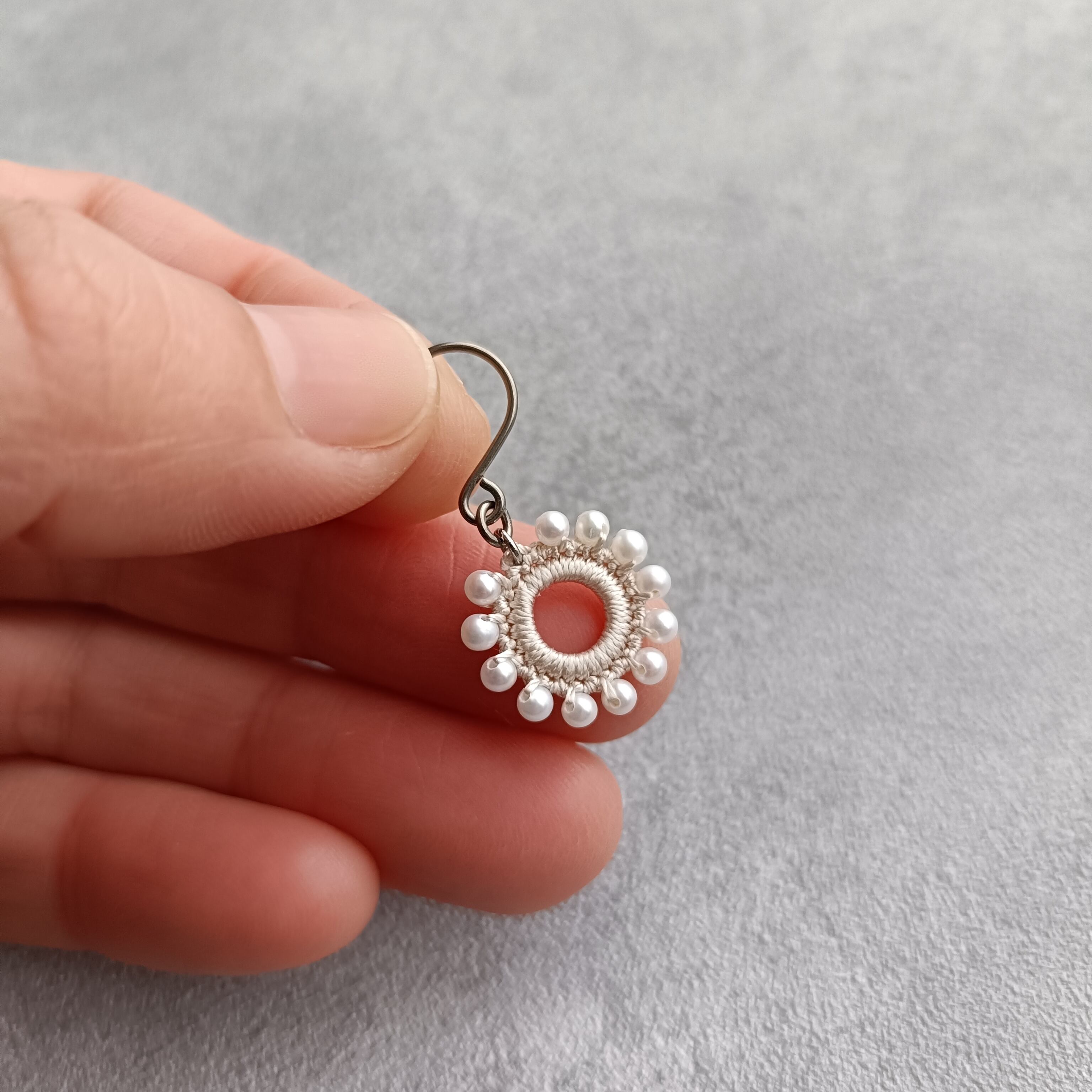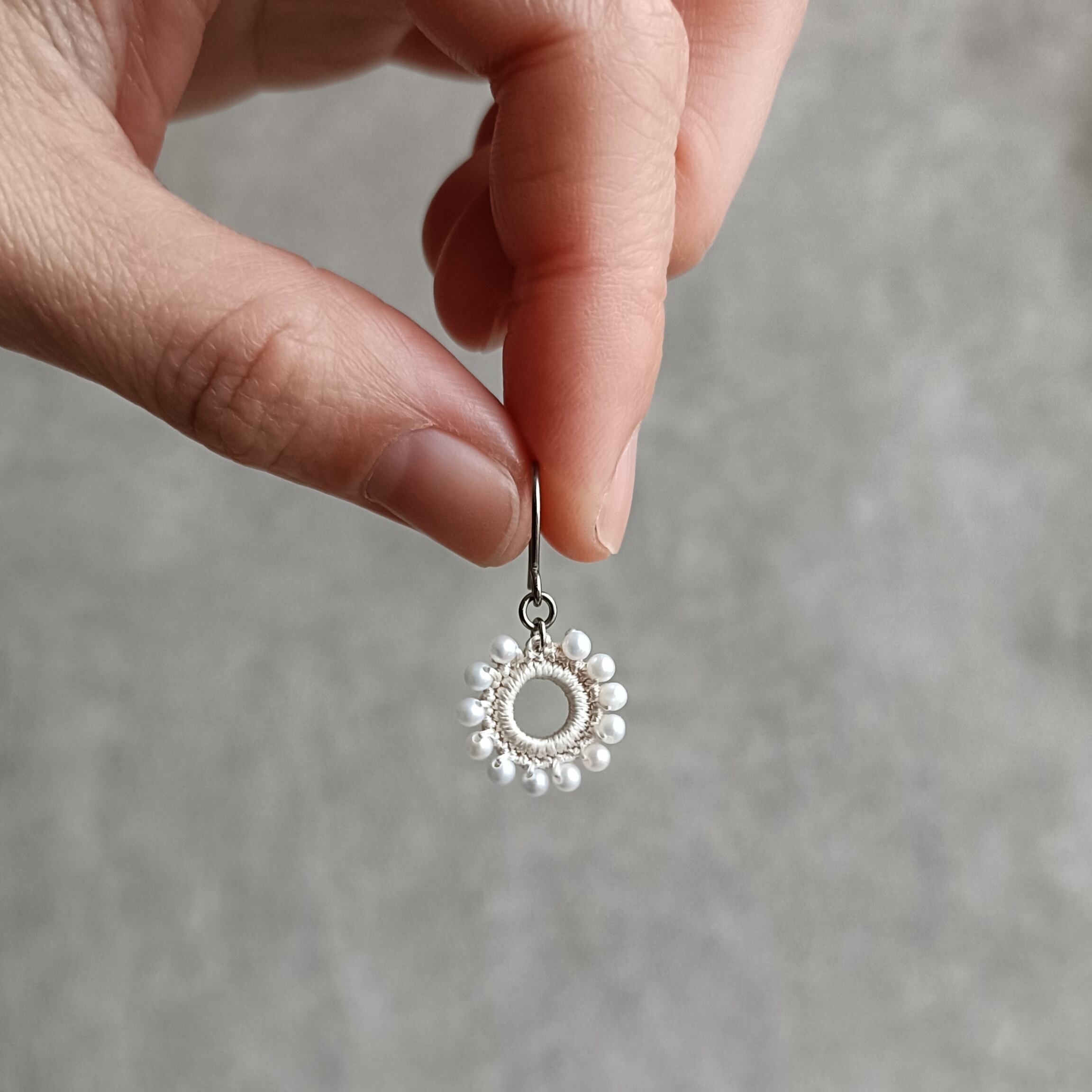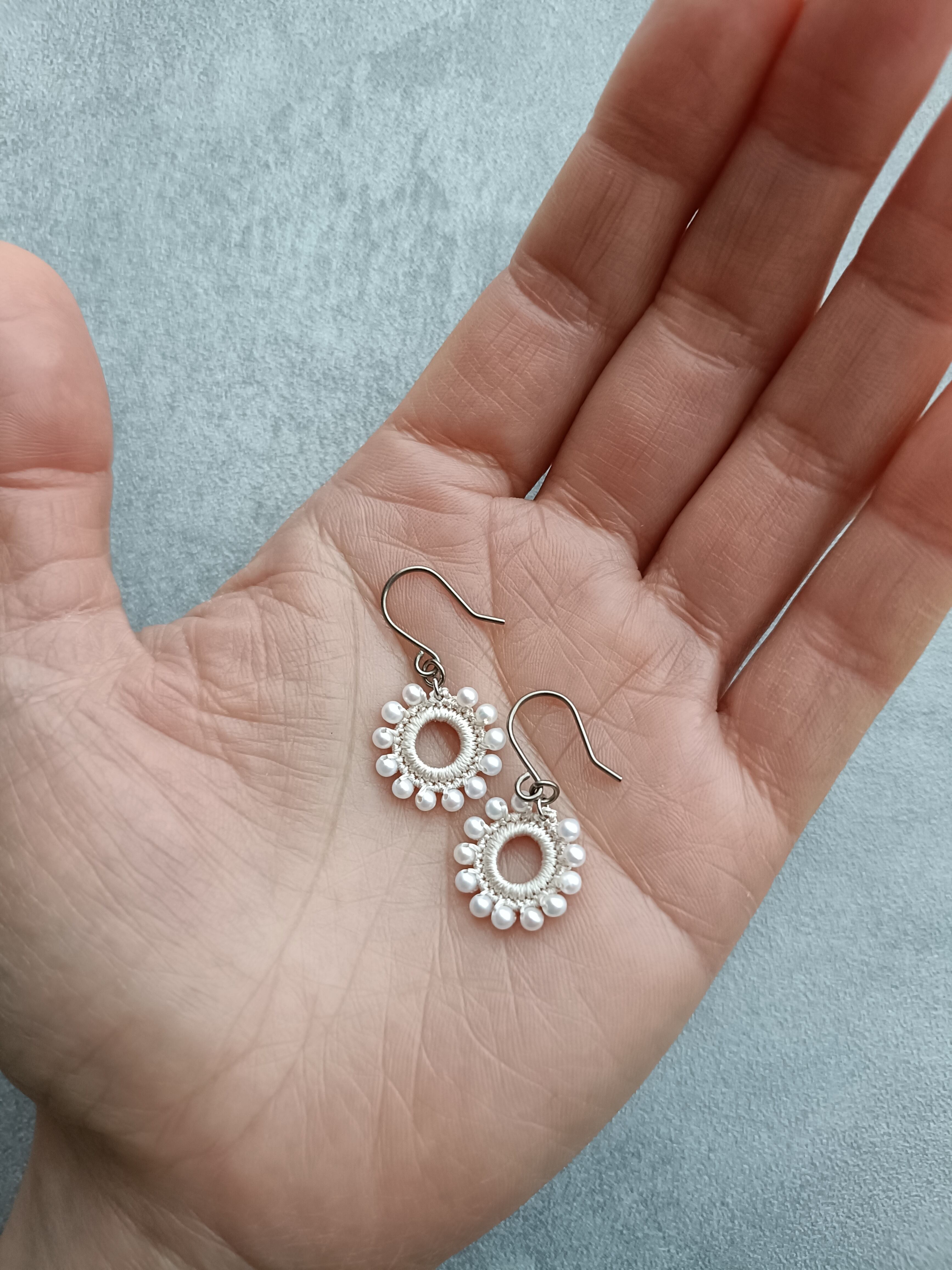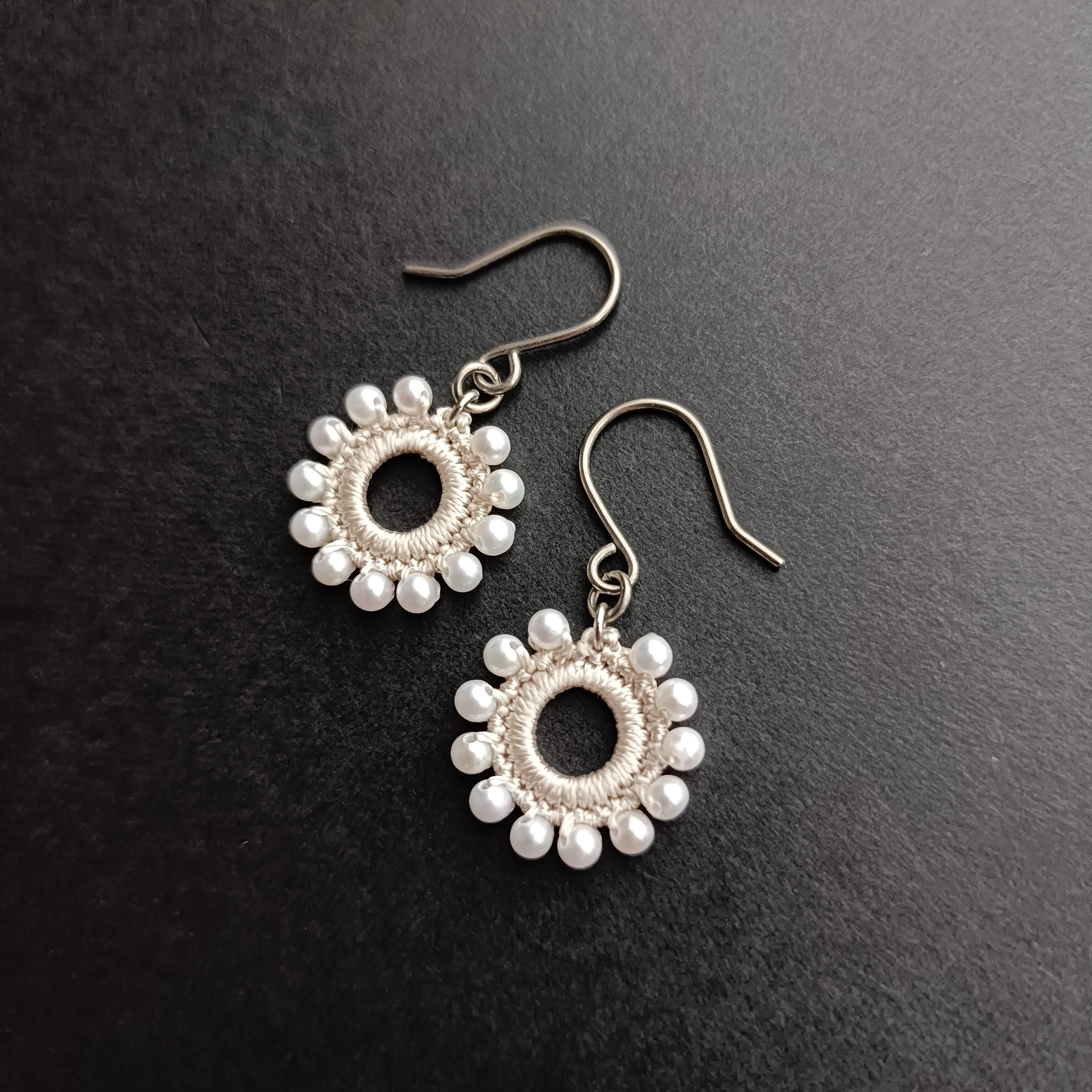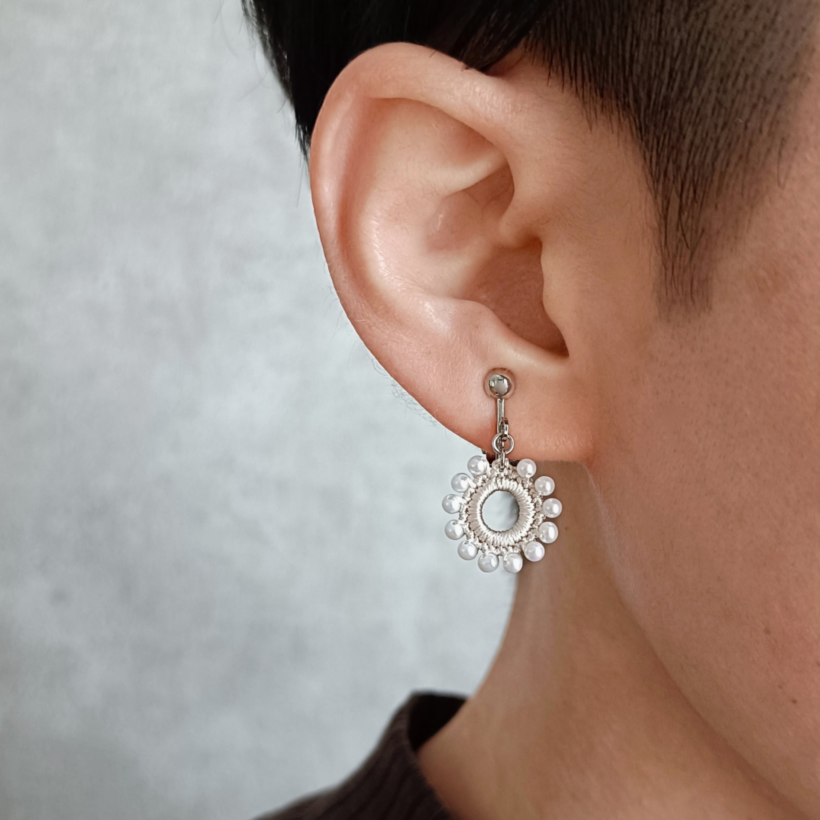 約2.5mmの上質な淡水パールを編み込んだ耳飾り。