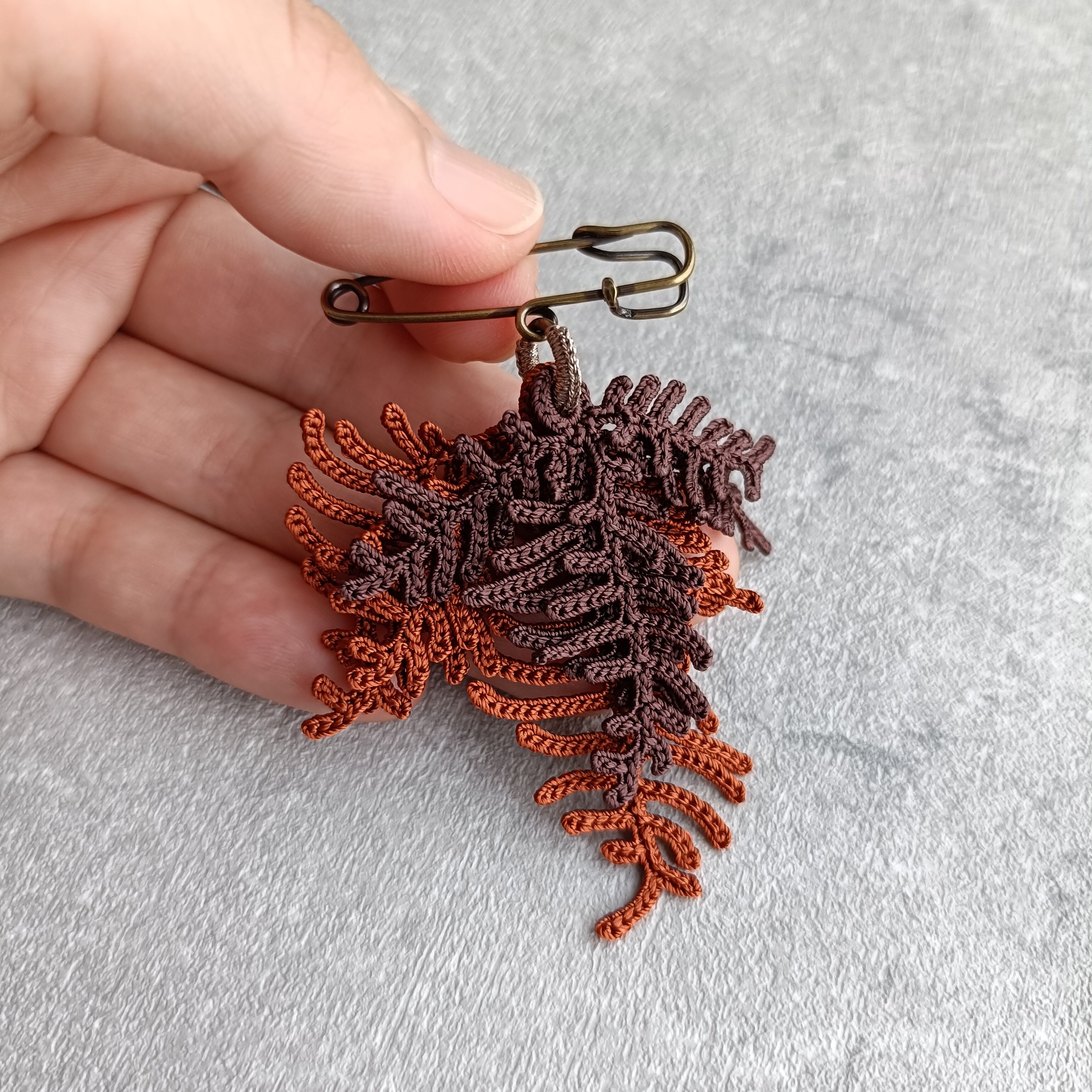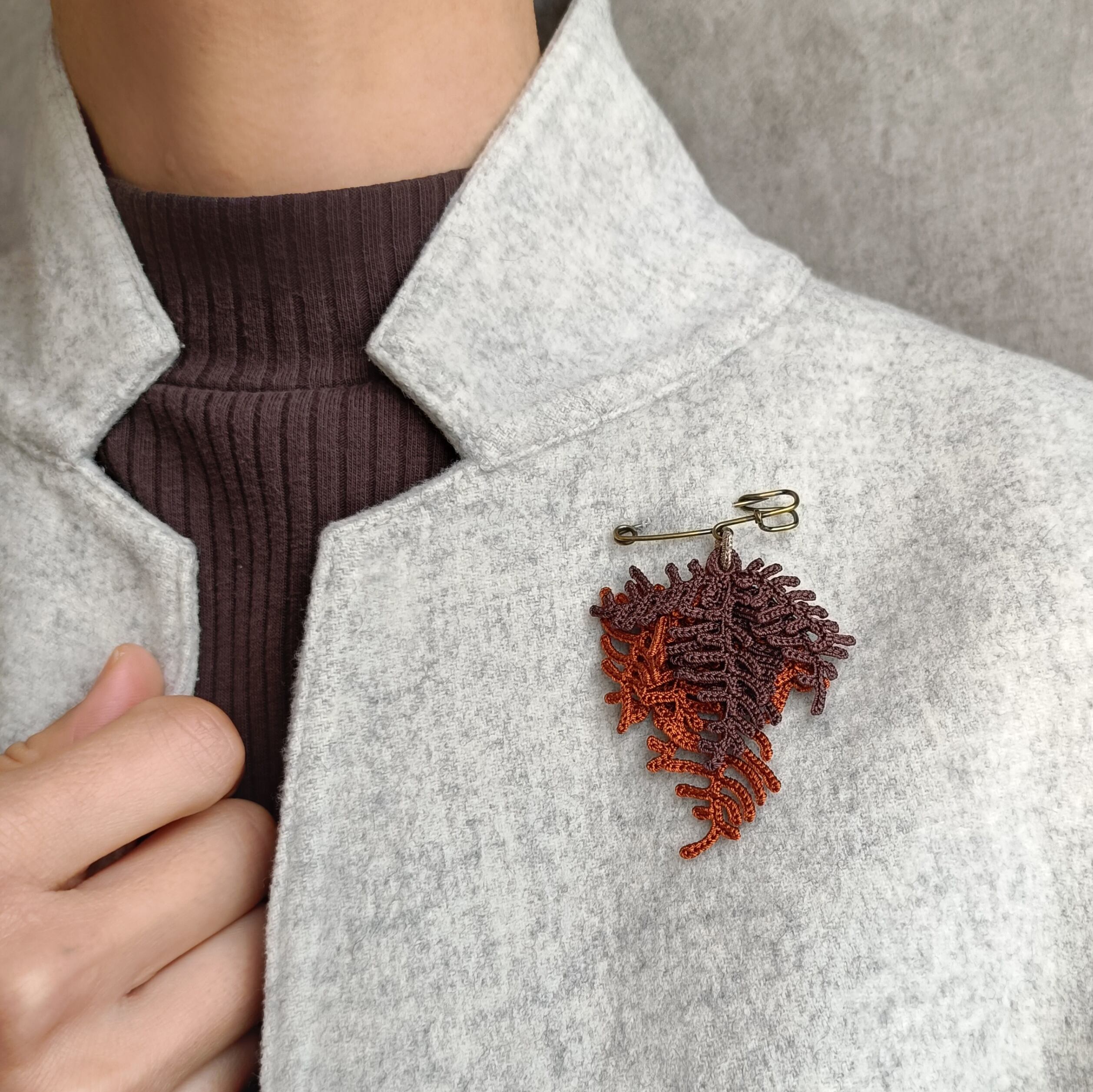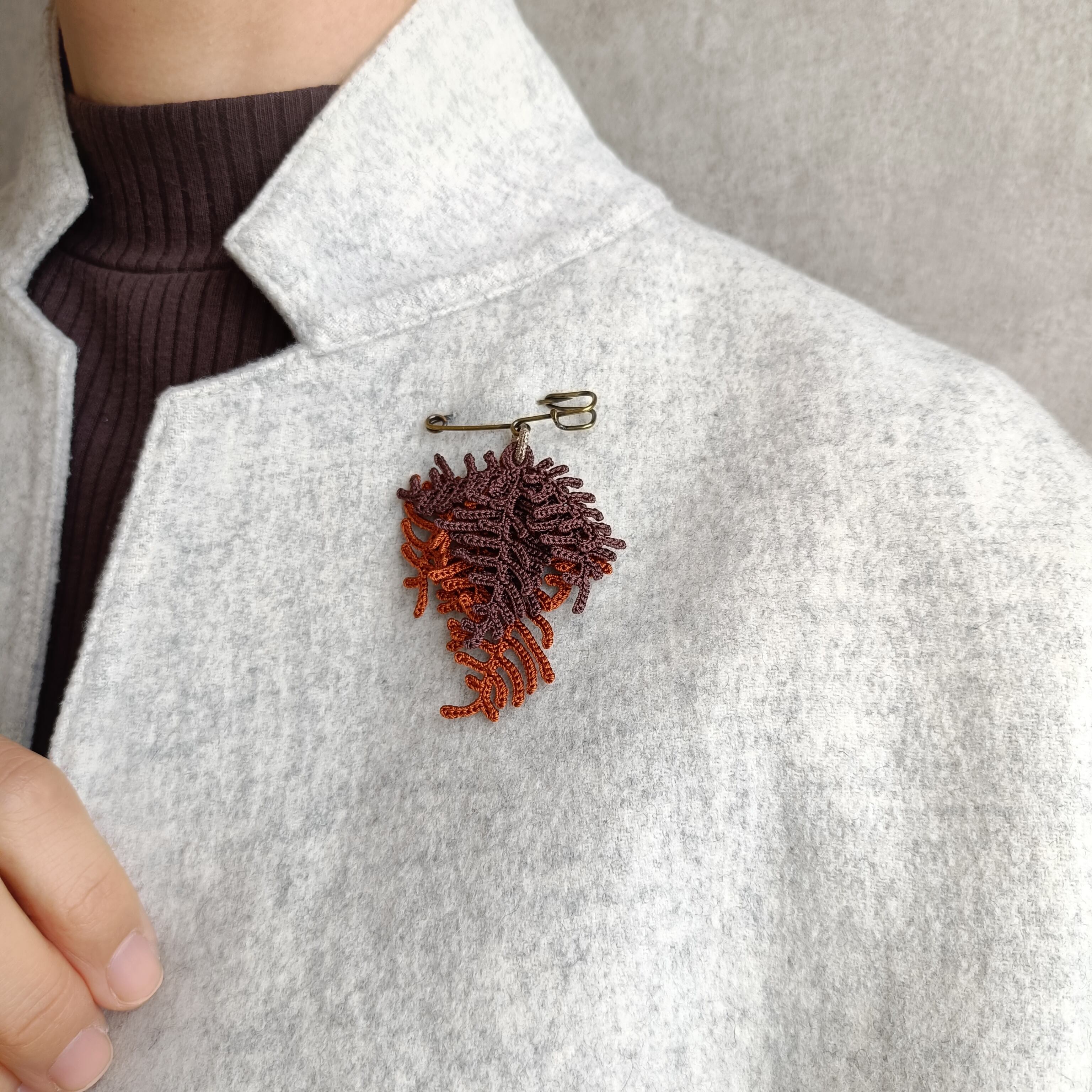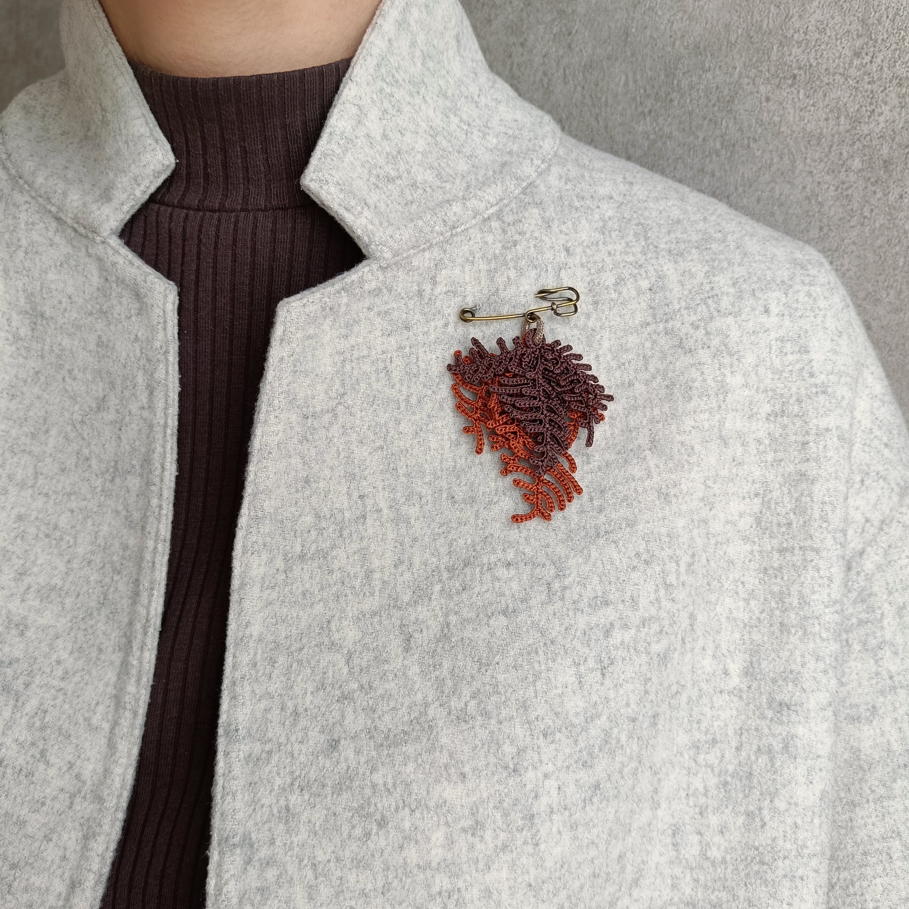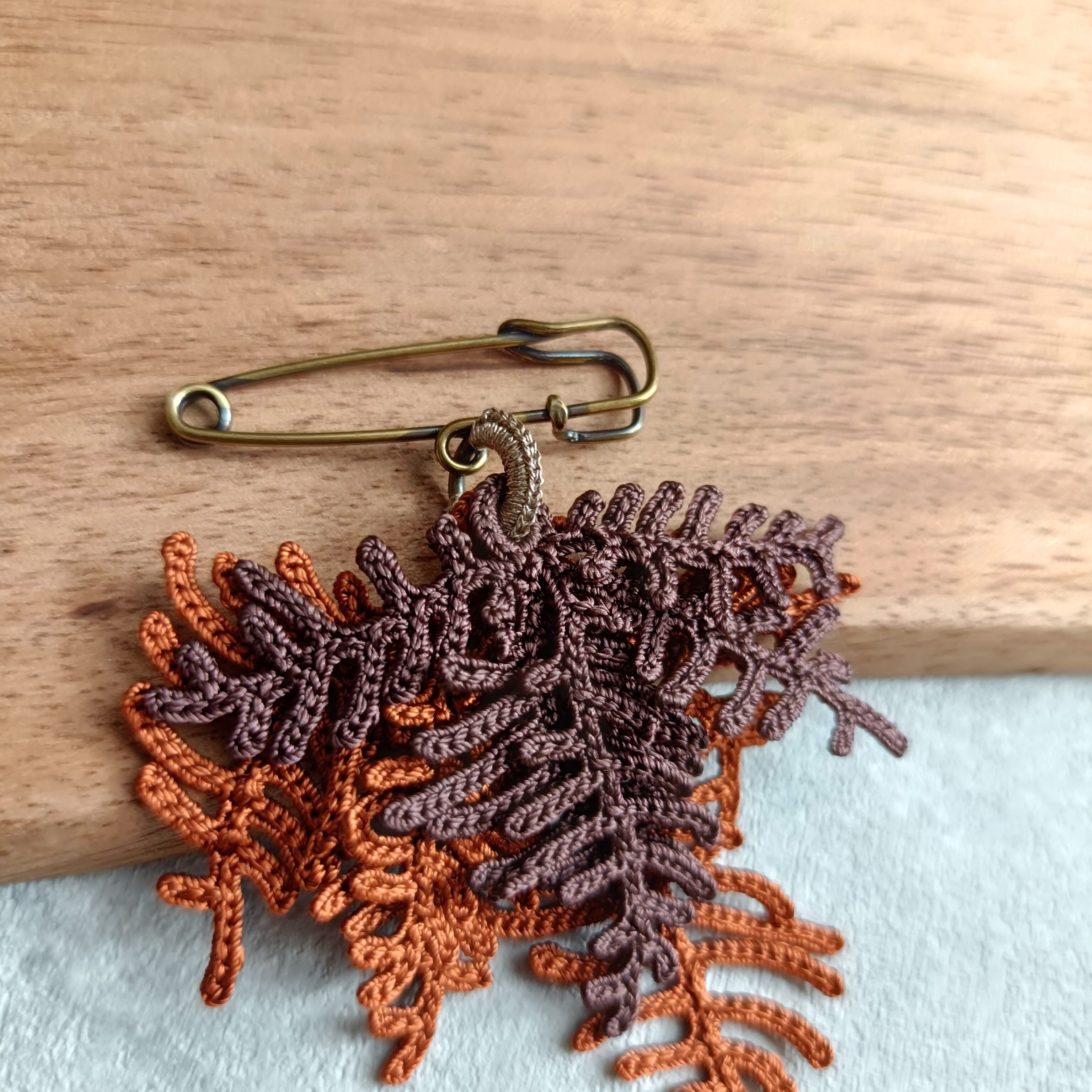 植物をイメージして編んだブローチ。