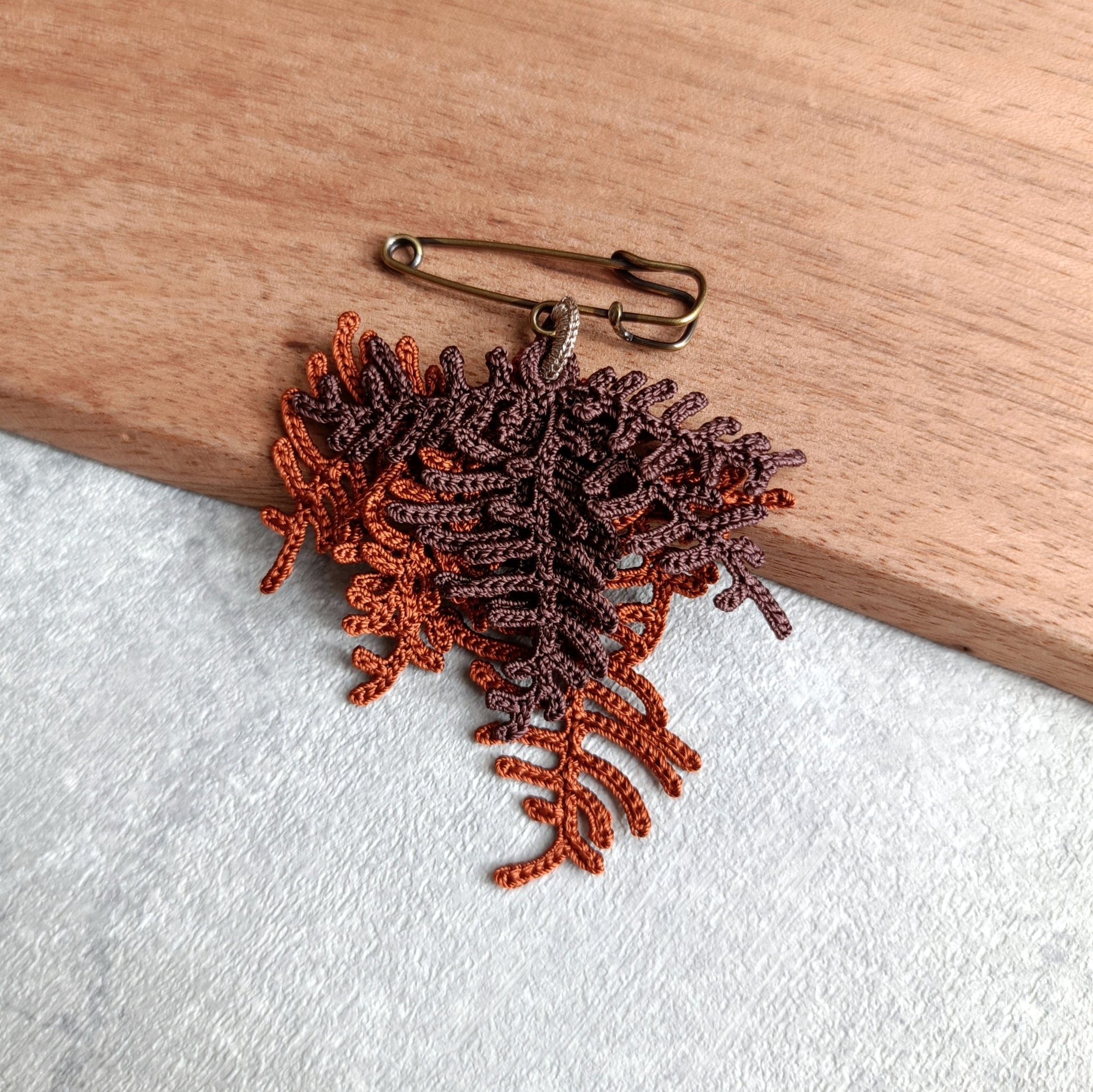 Leafy Plantブローチ / ダークブラウン×テラコッタ