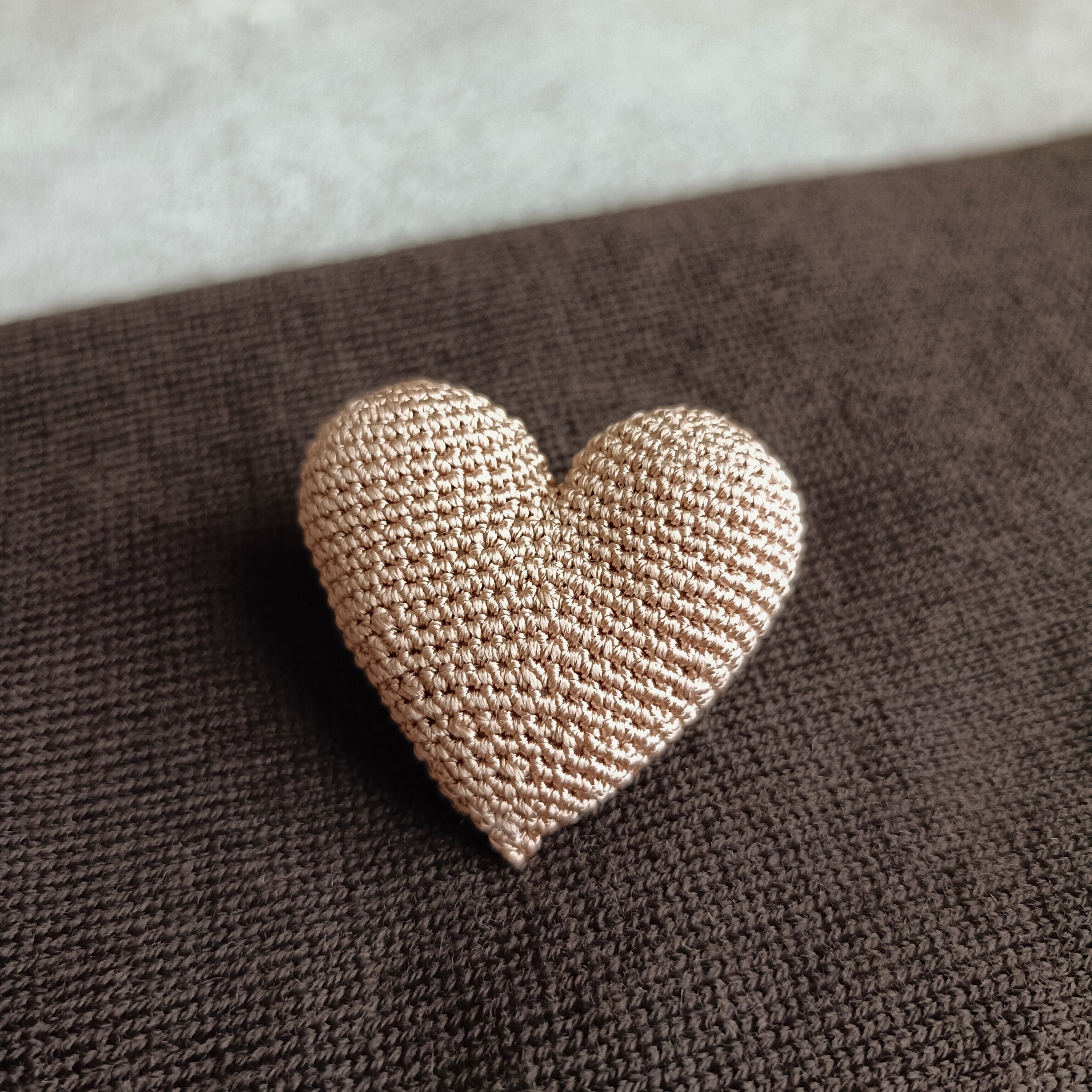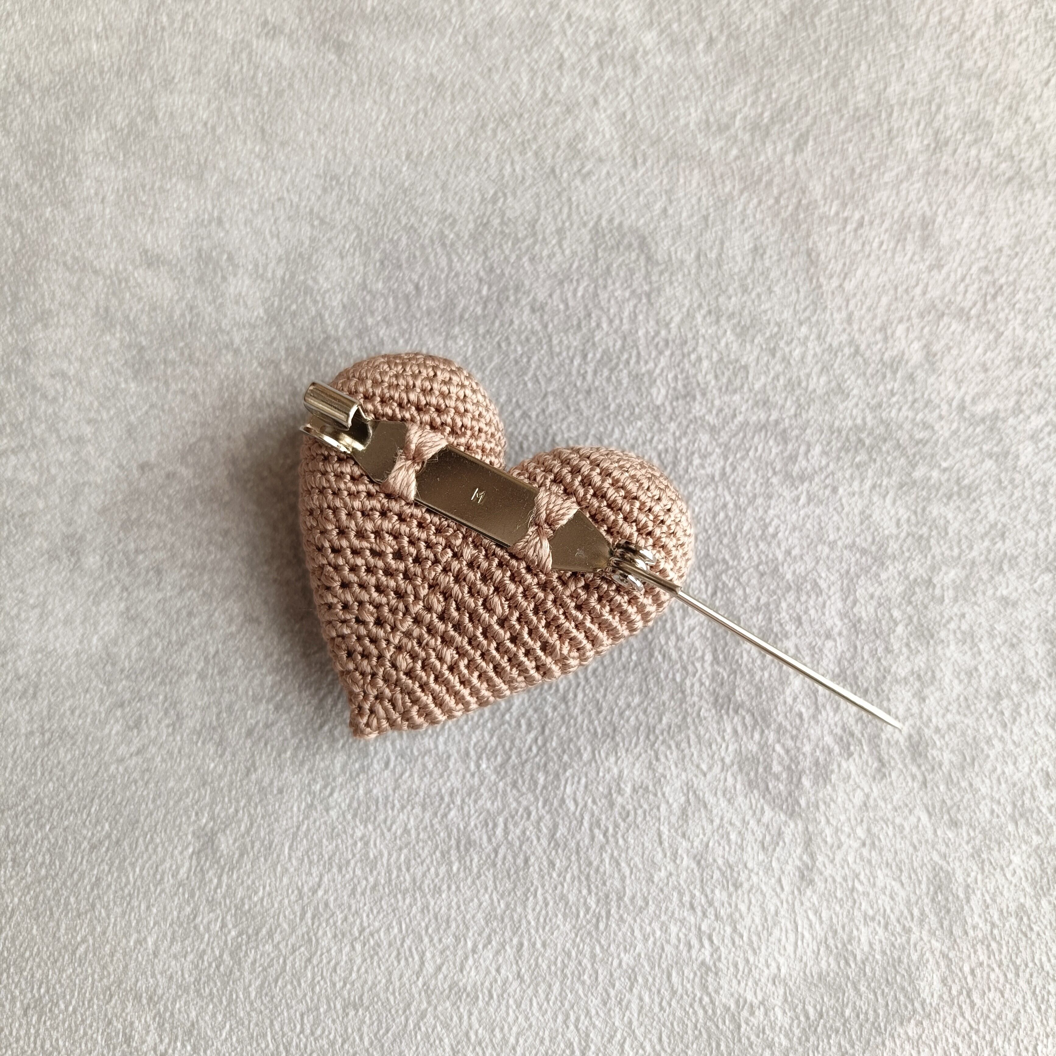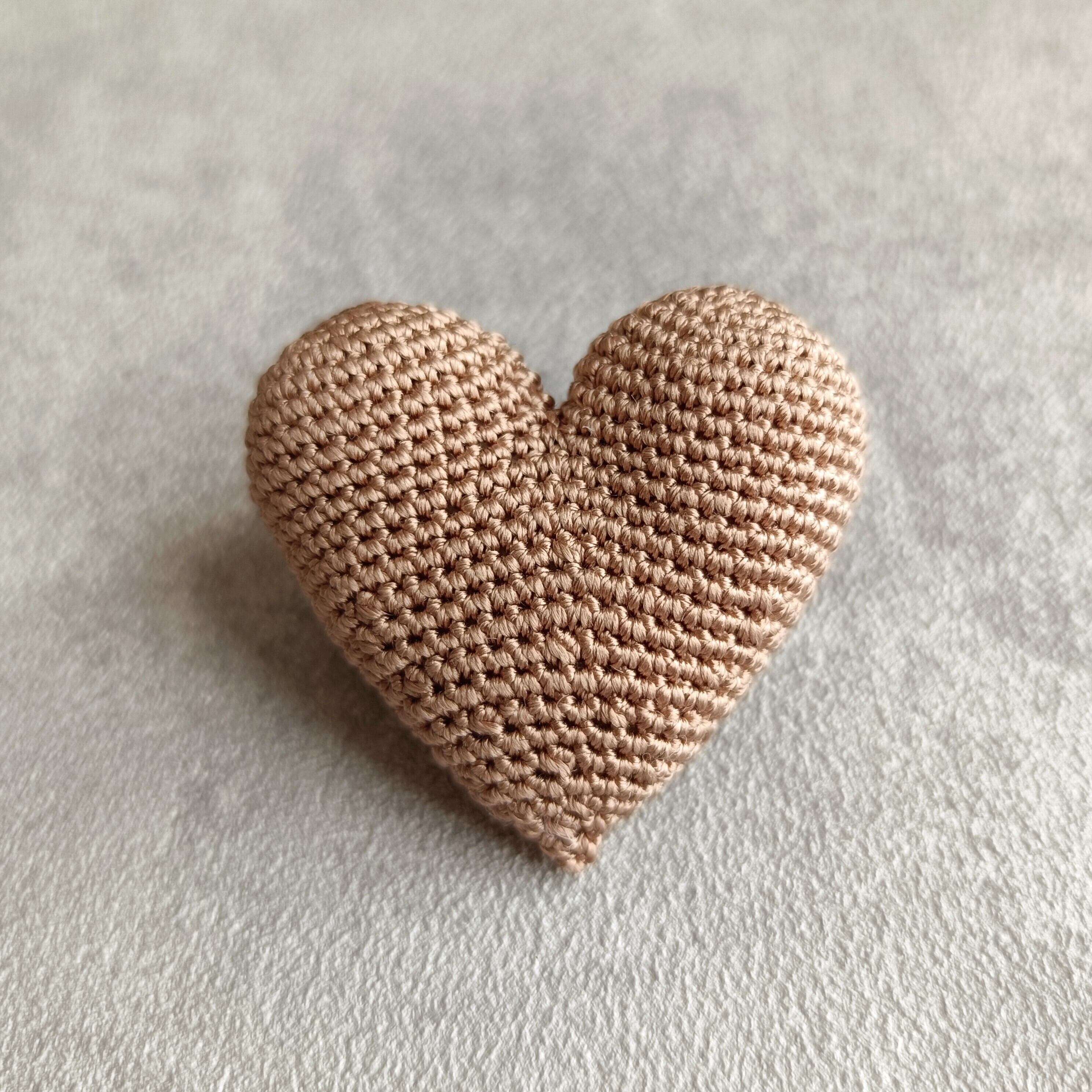 ふっくらとかわいいハート型のブローチ。
