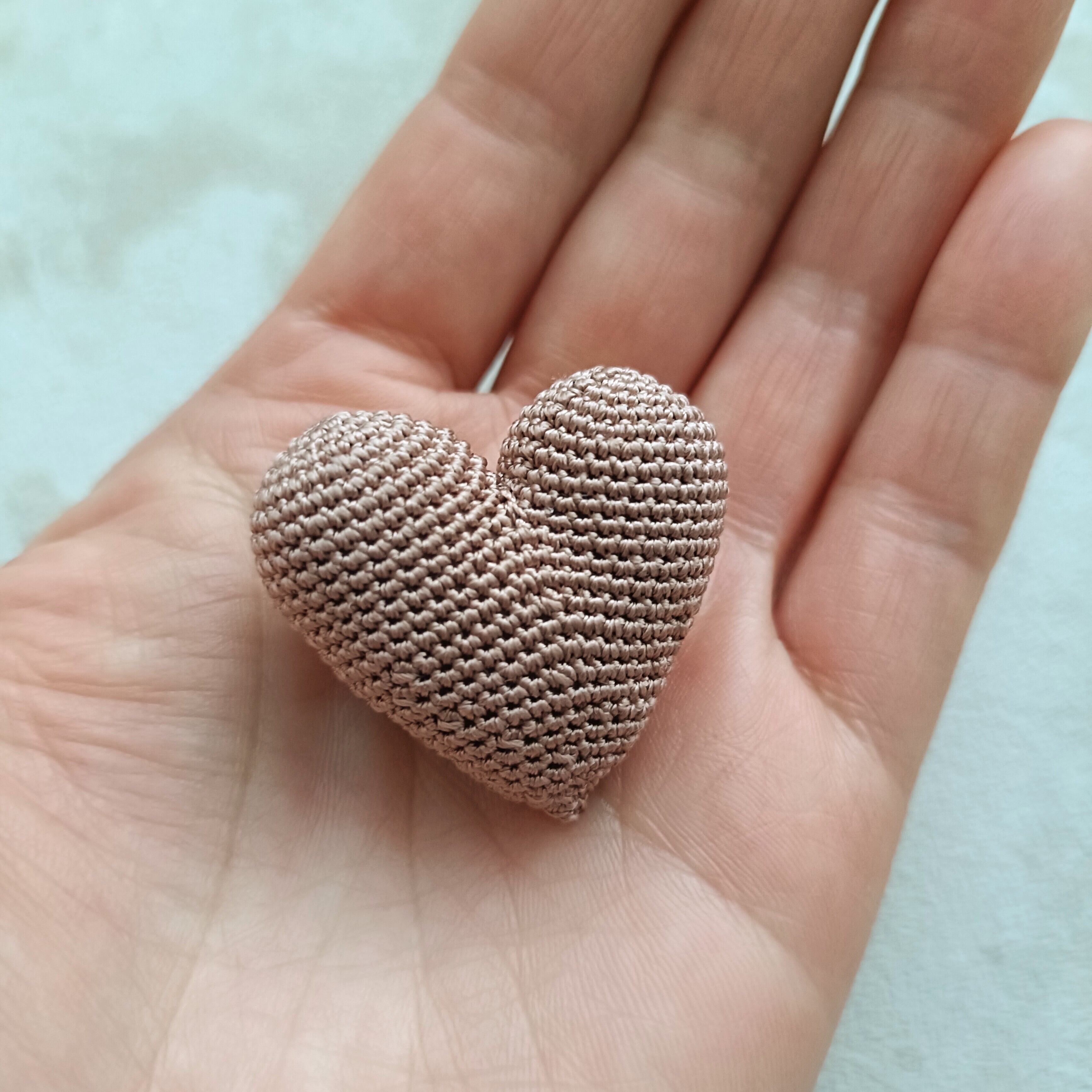 立体的に編み立て、中にわたを詰めています。