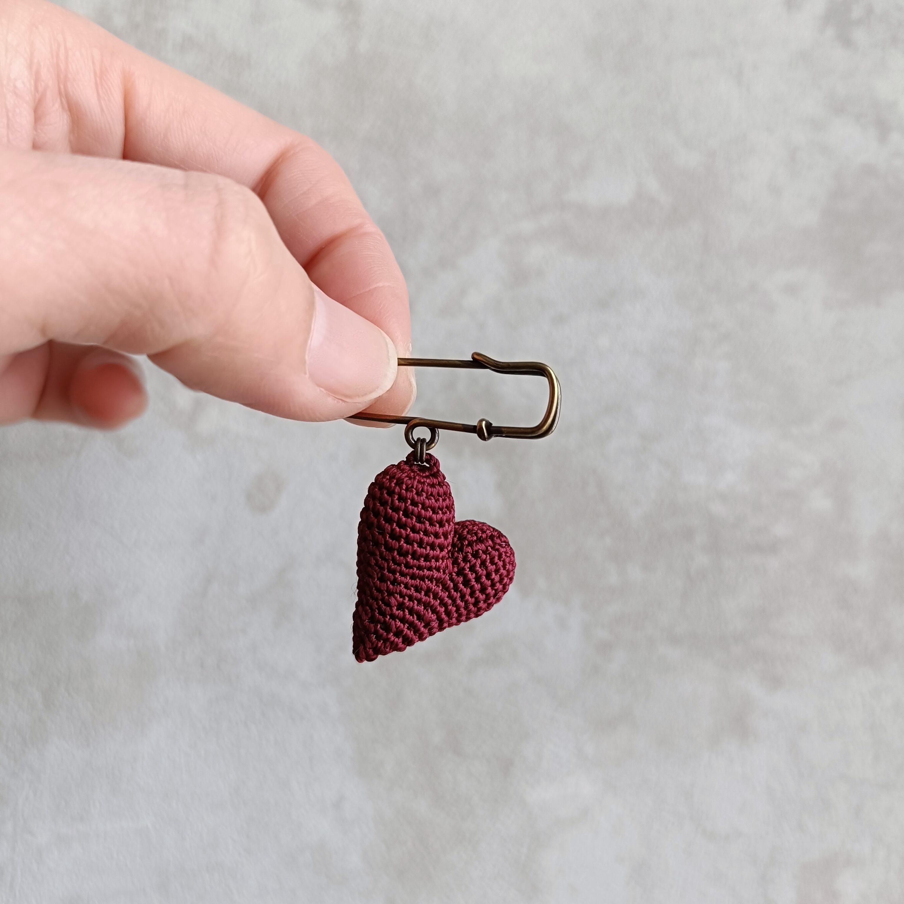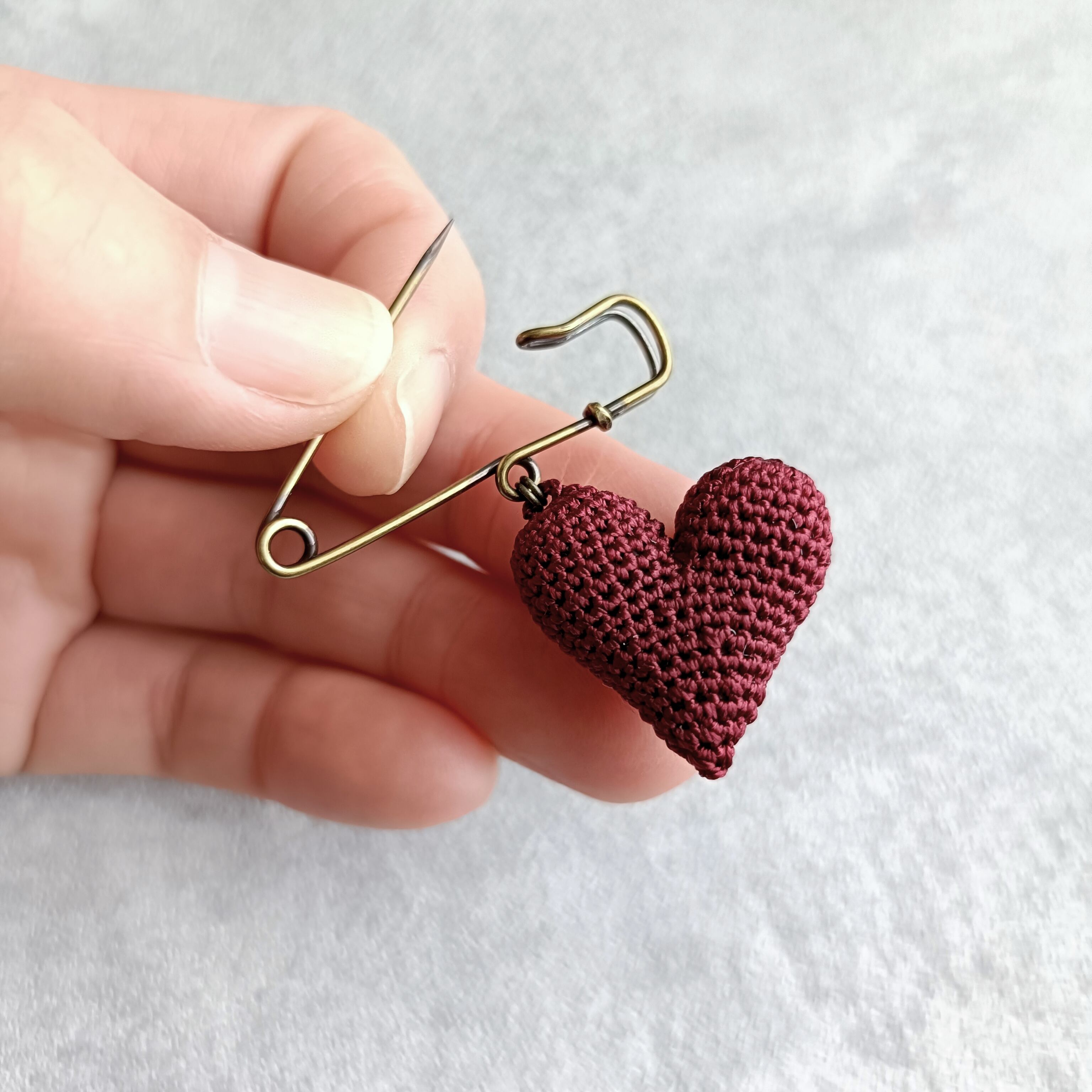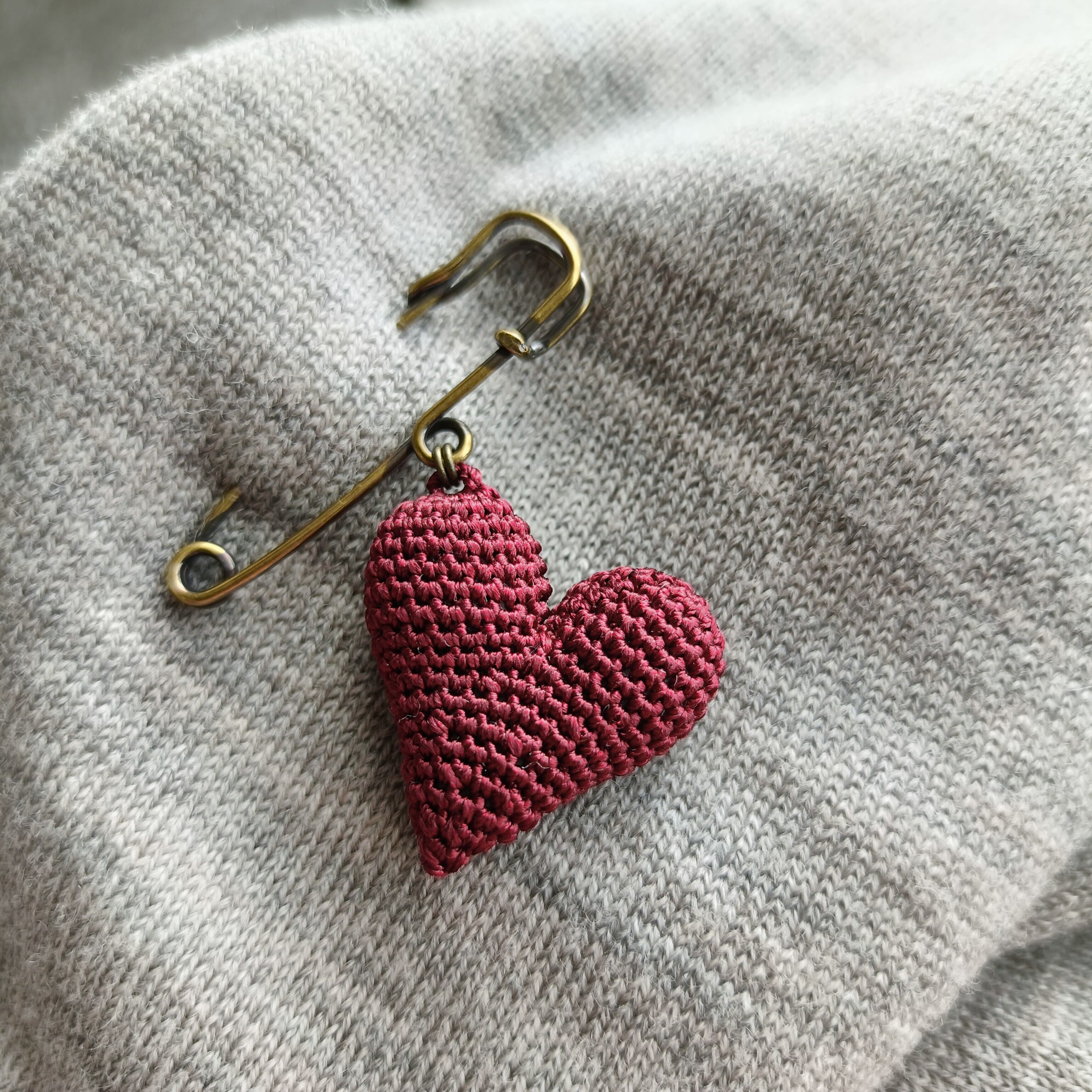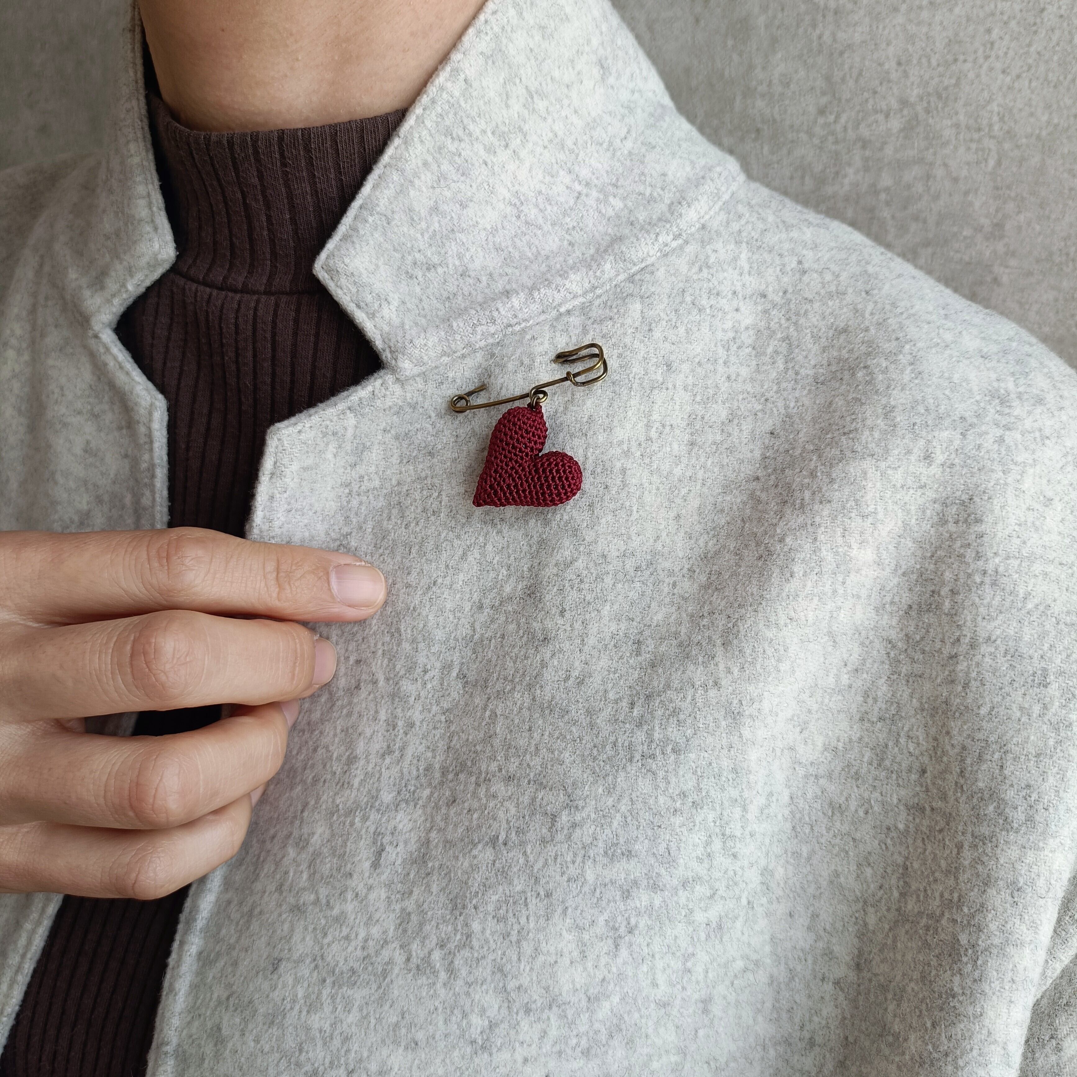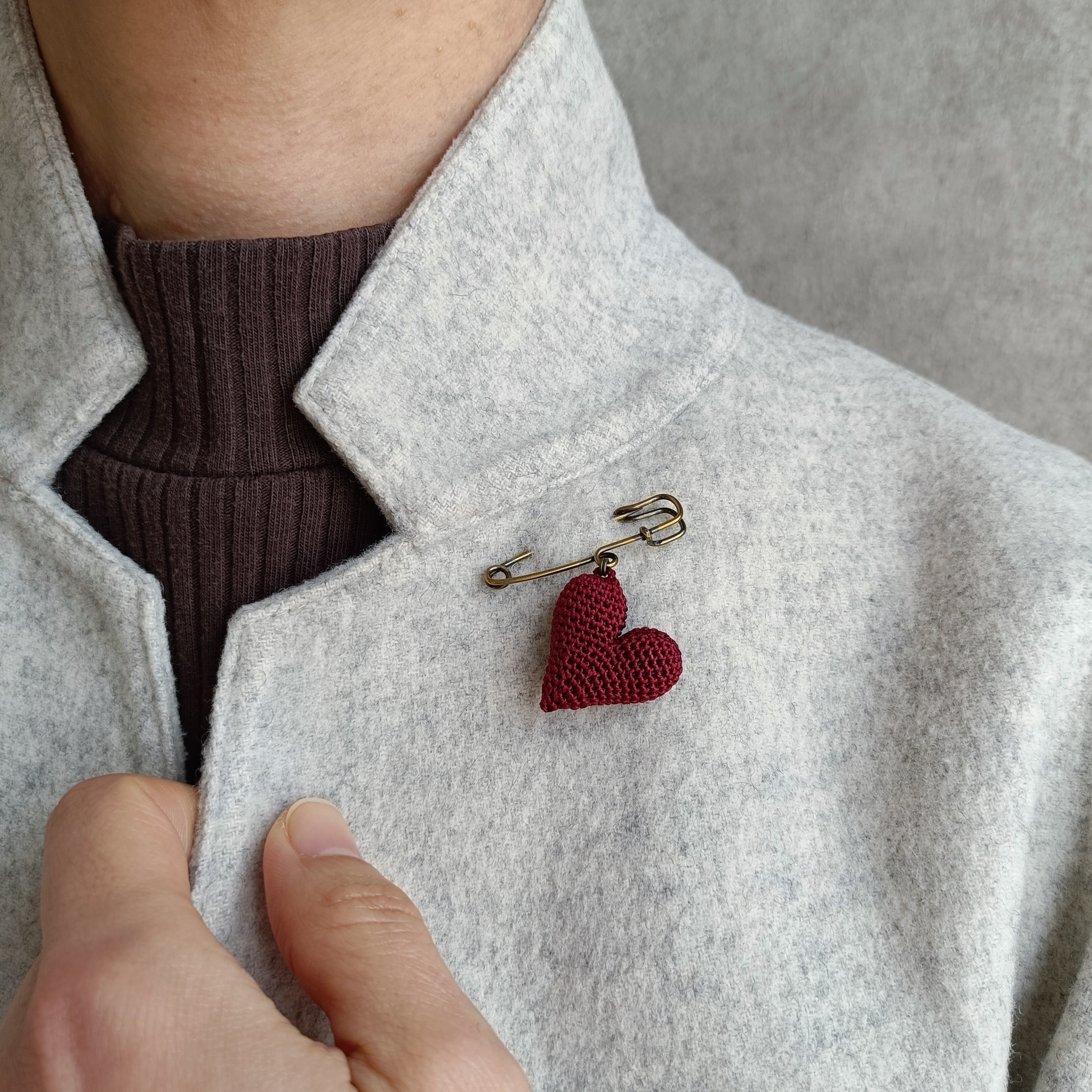 通常のブローチタイプよりグッと小さく、スッキリとした形に編み上げました。