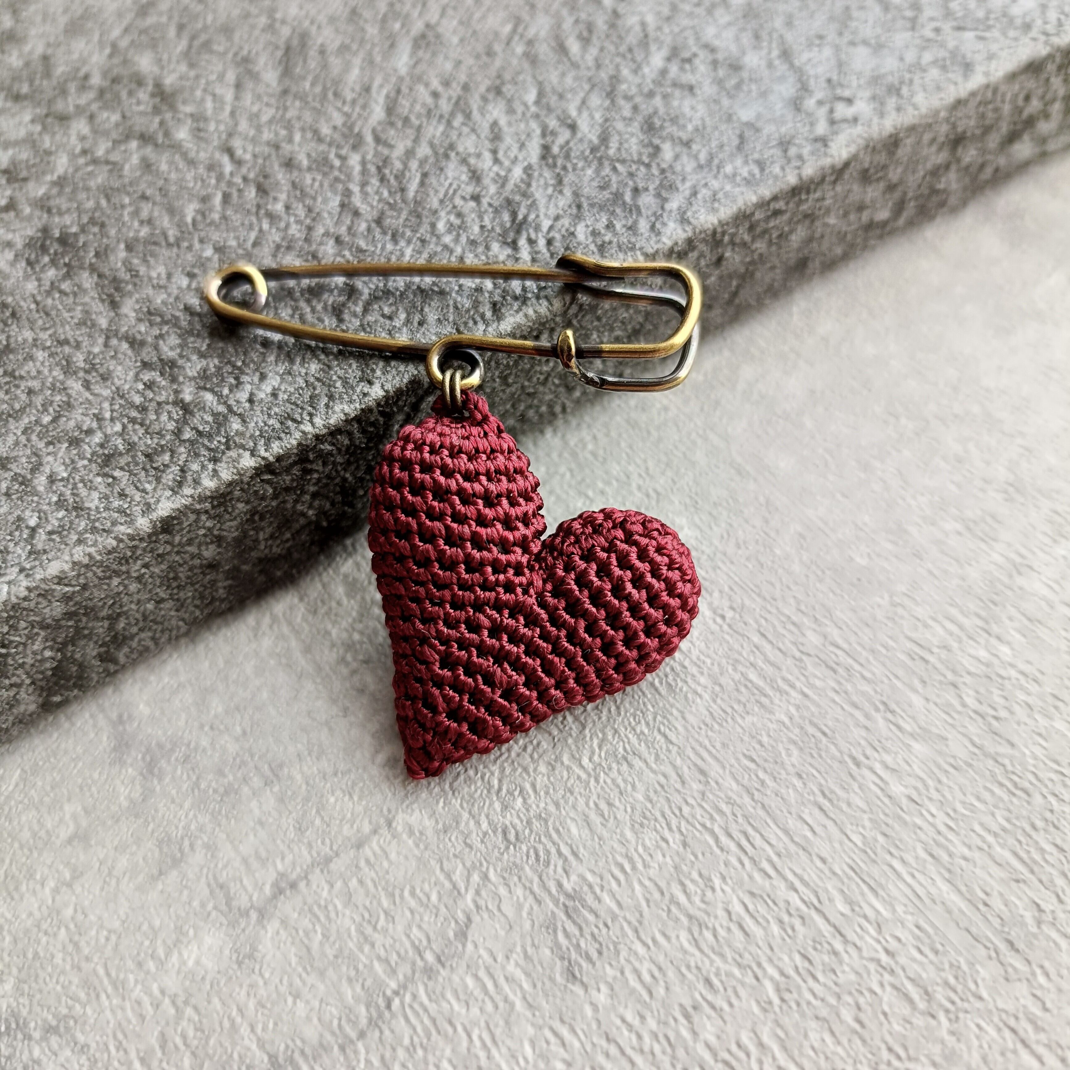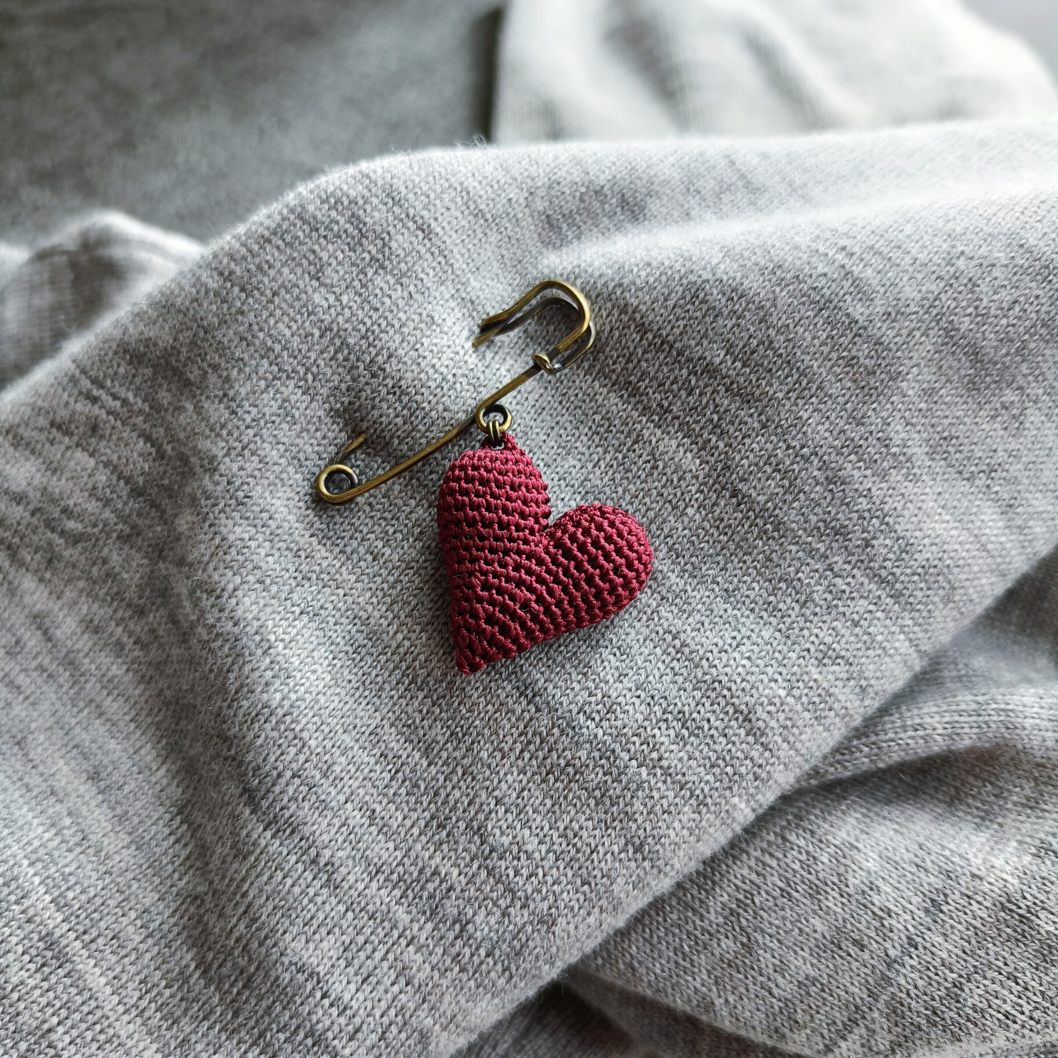 ふっくらとかわいい揺れるハート型のブローチ。