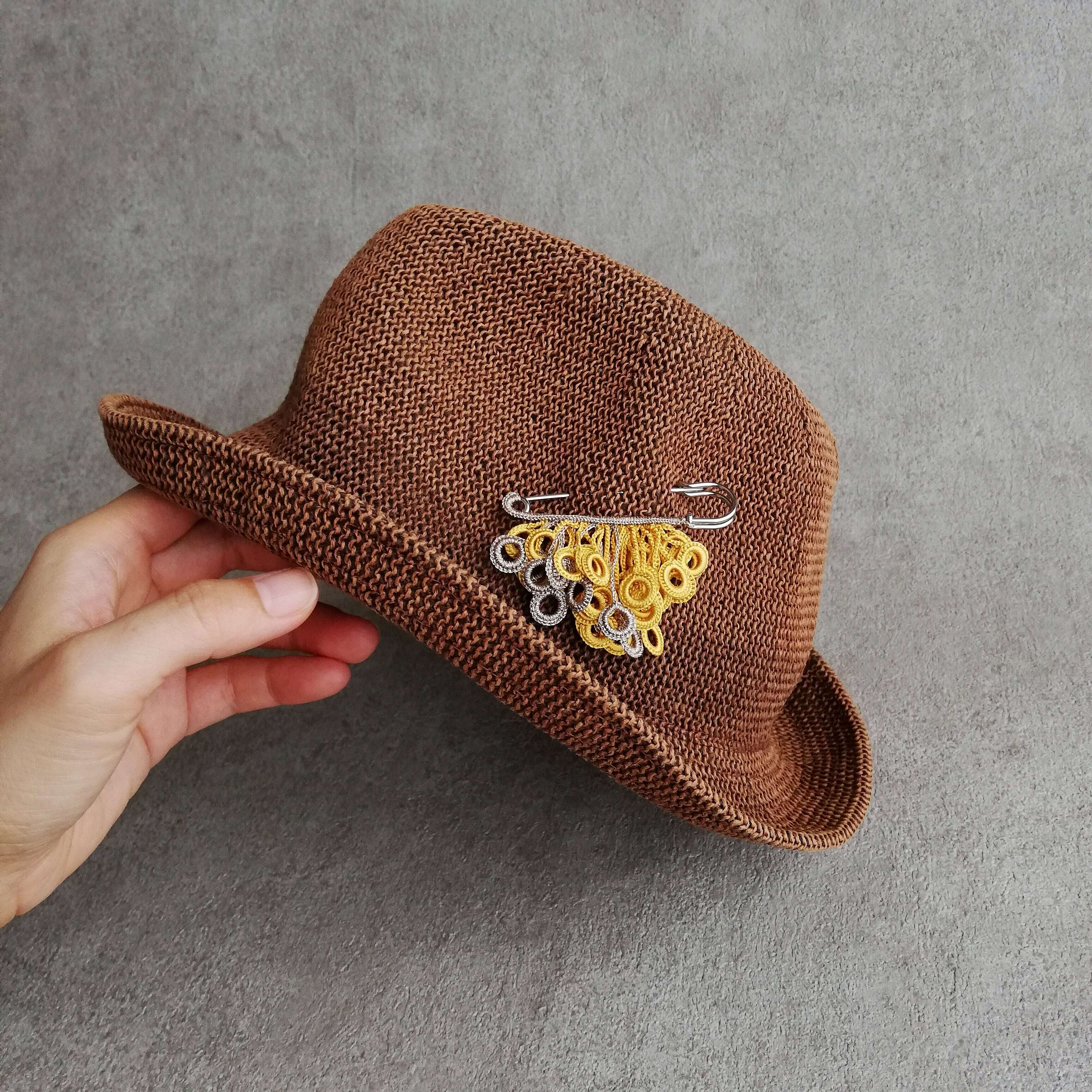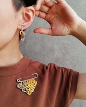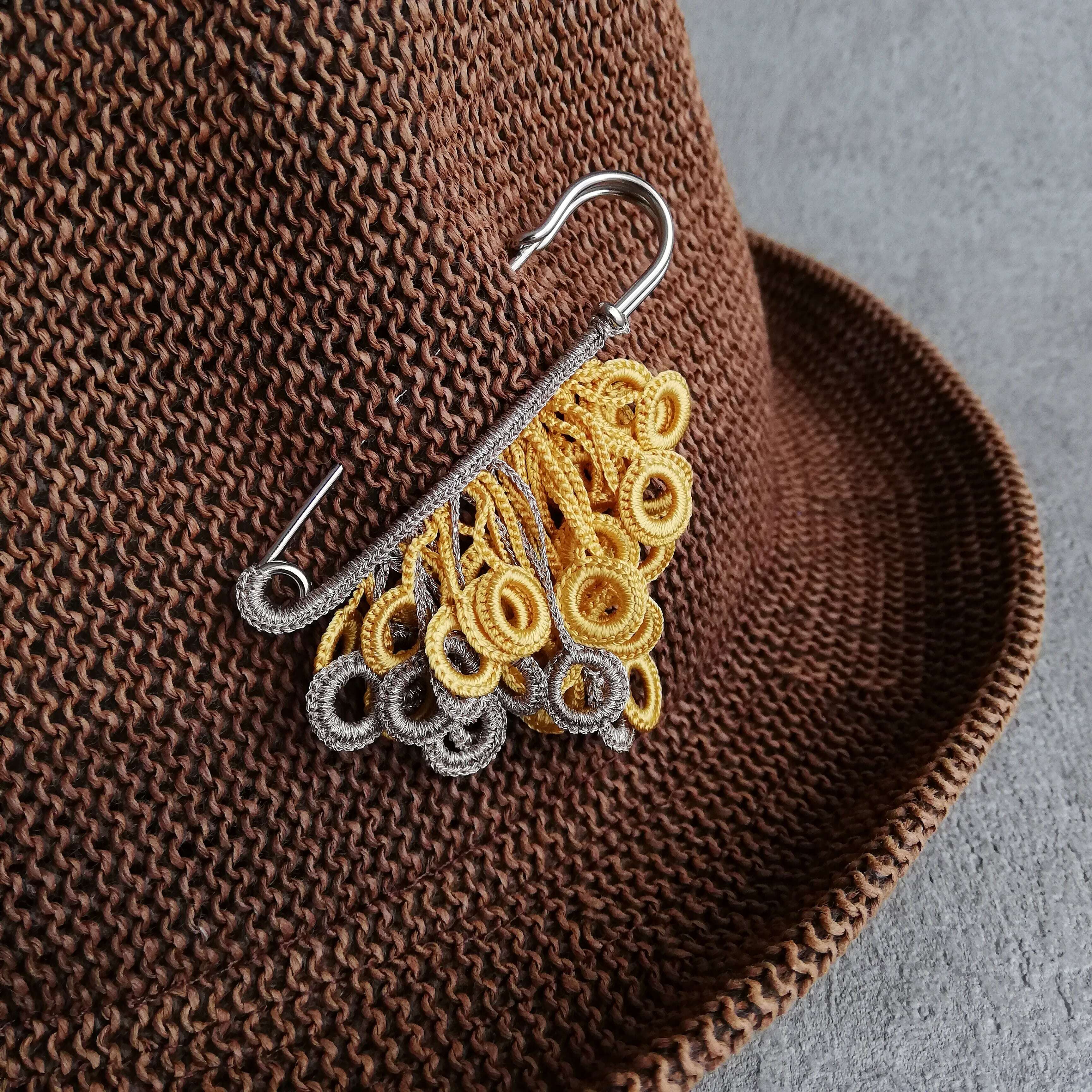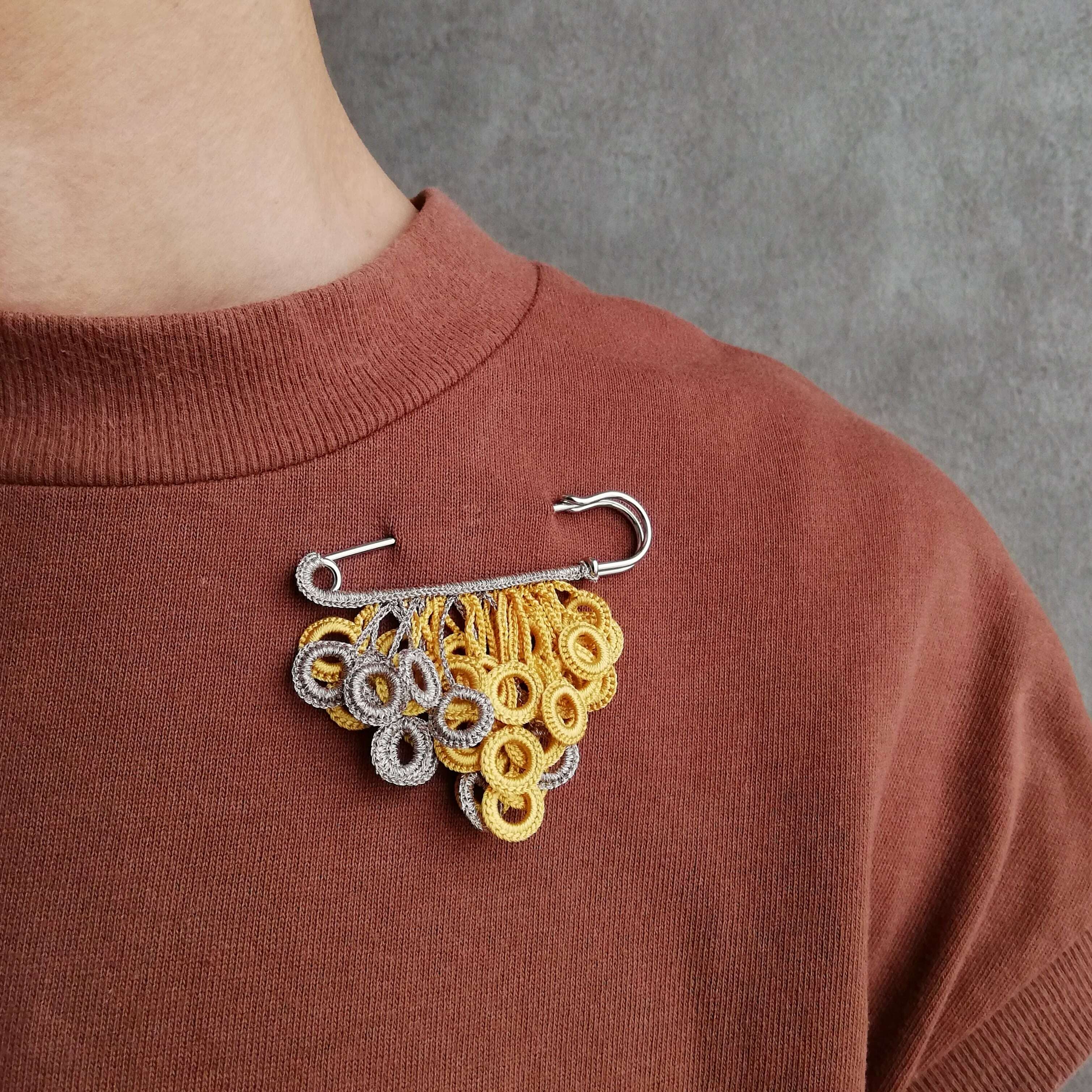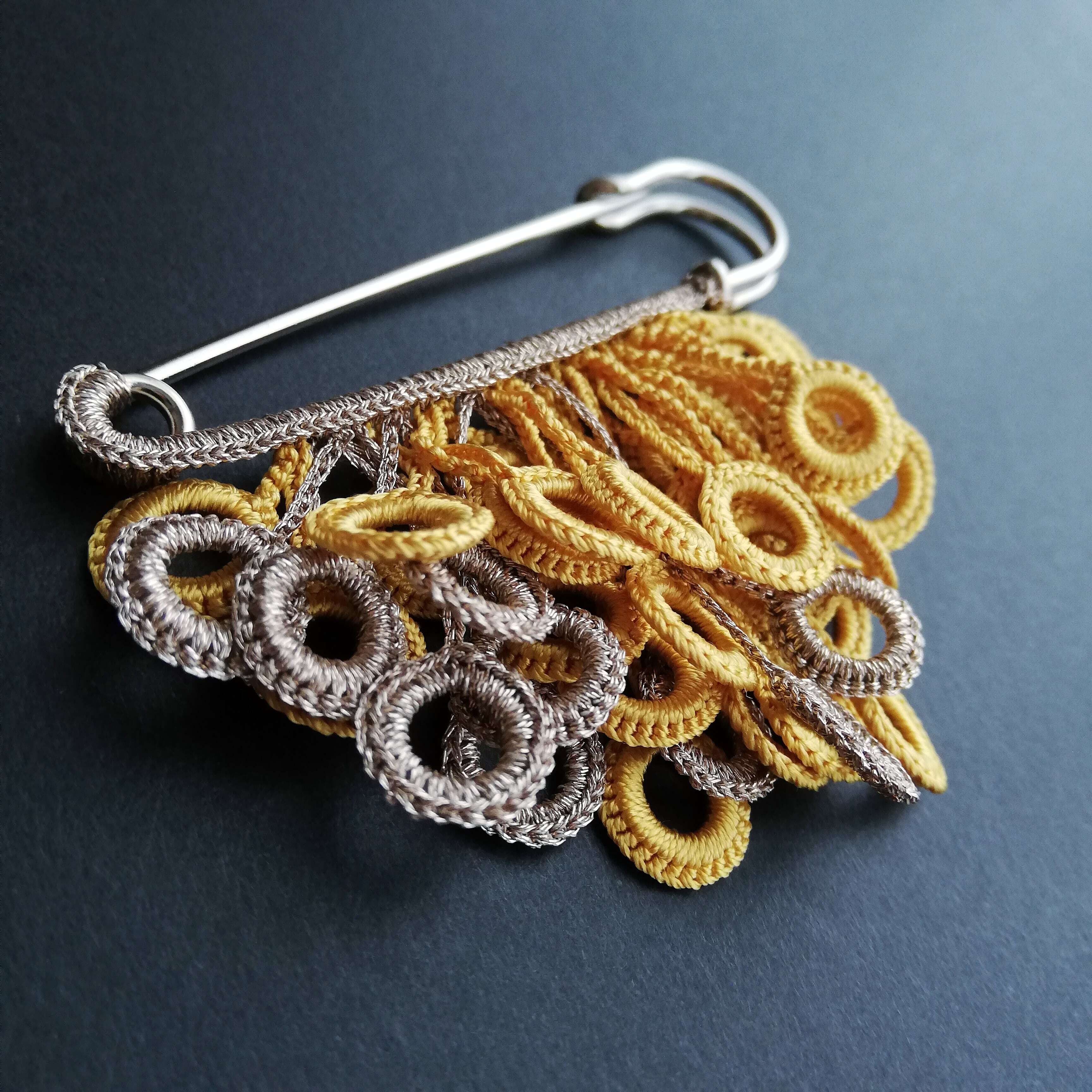 モチーフはブローチの軸にラメ糸で編み込んでいます。