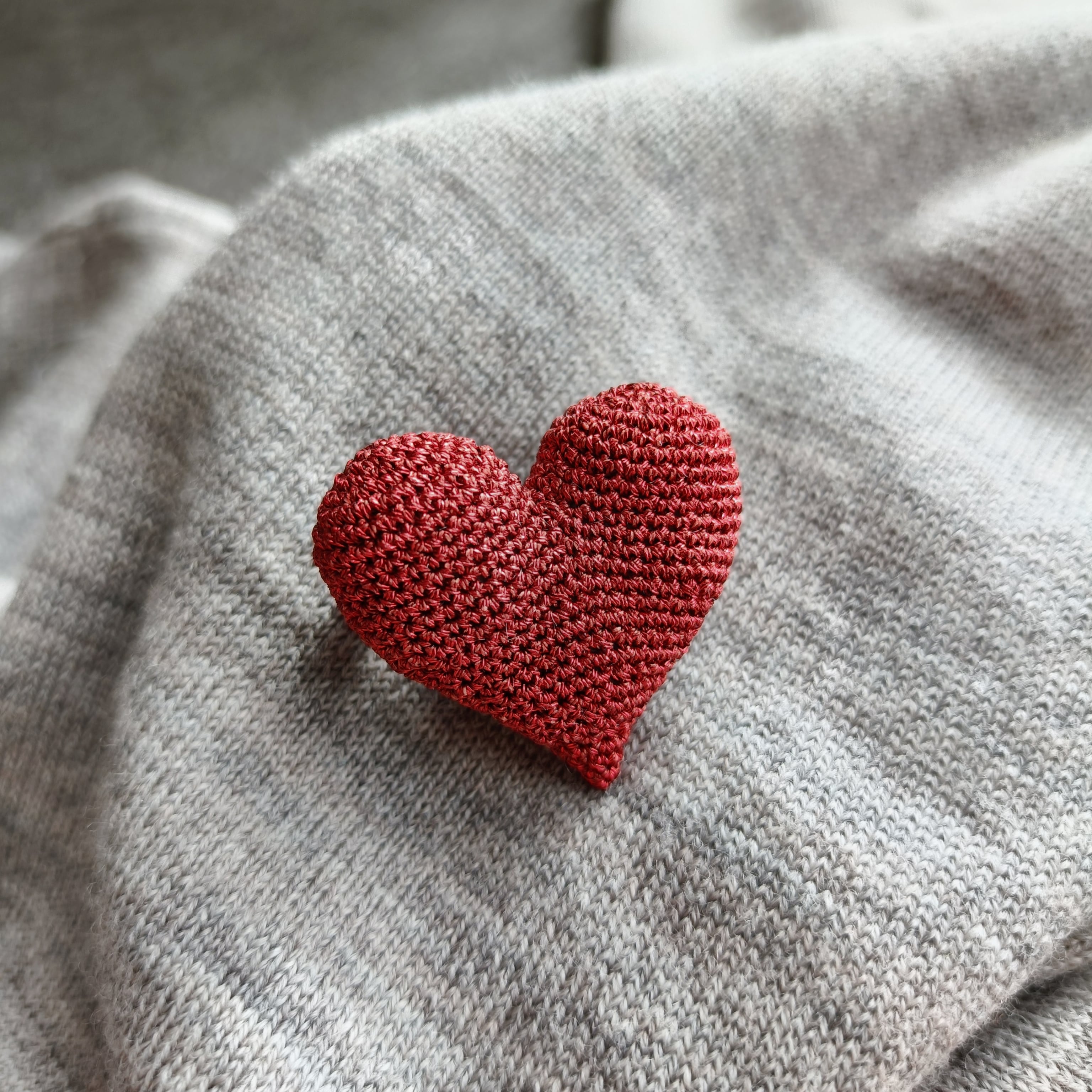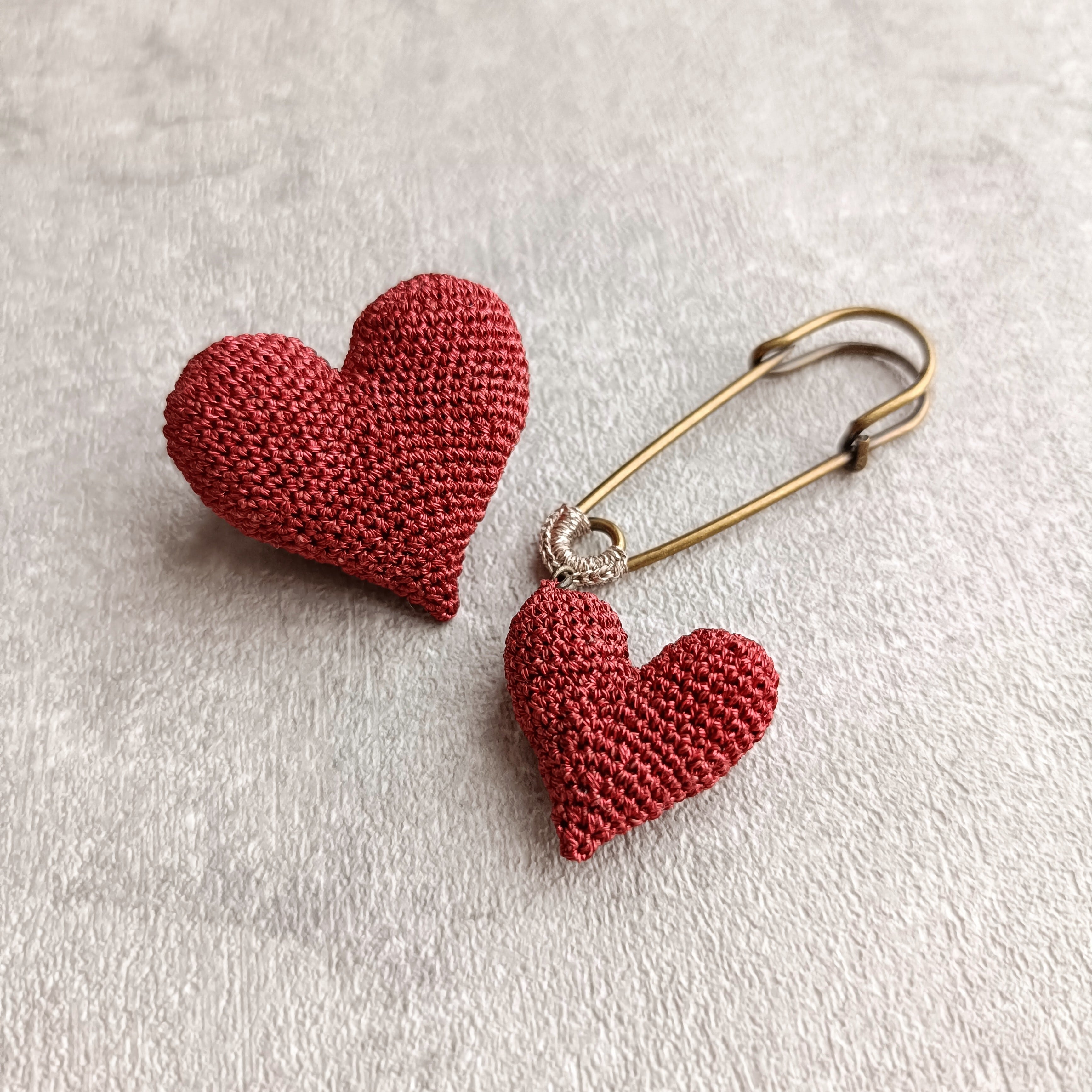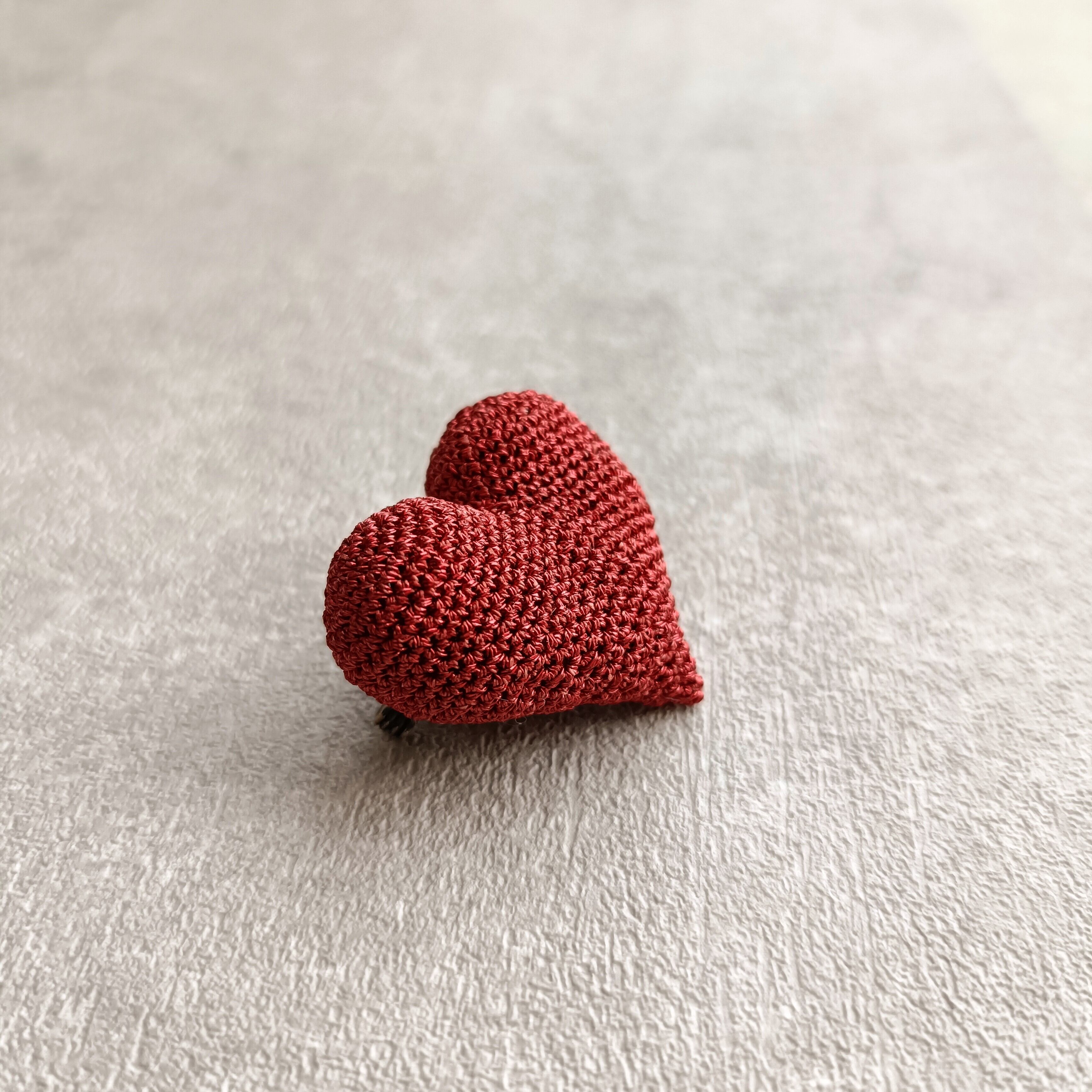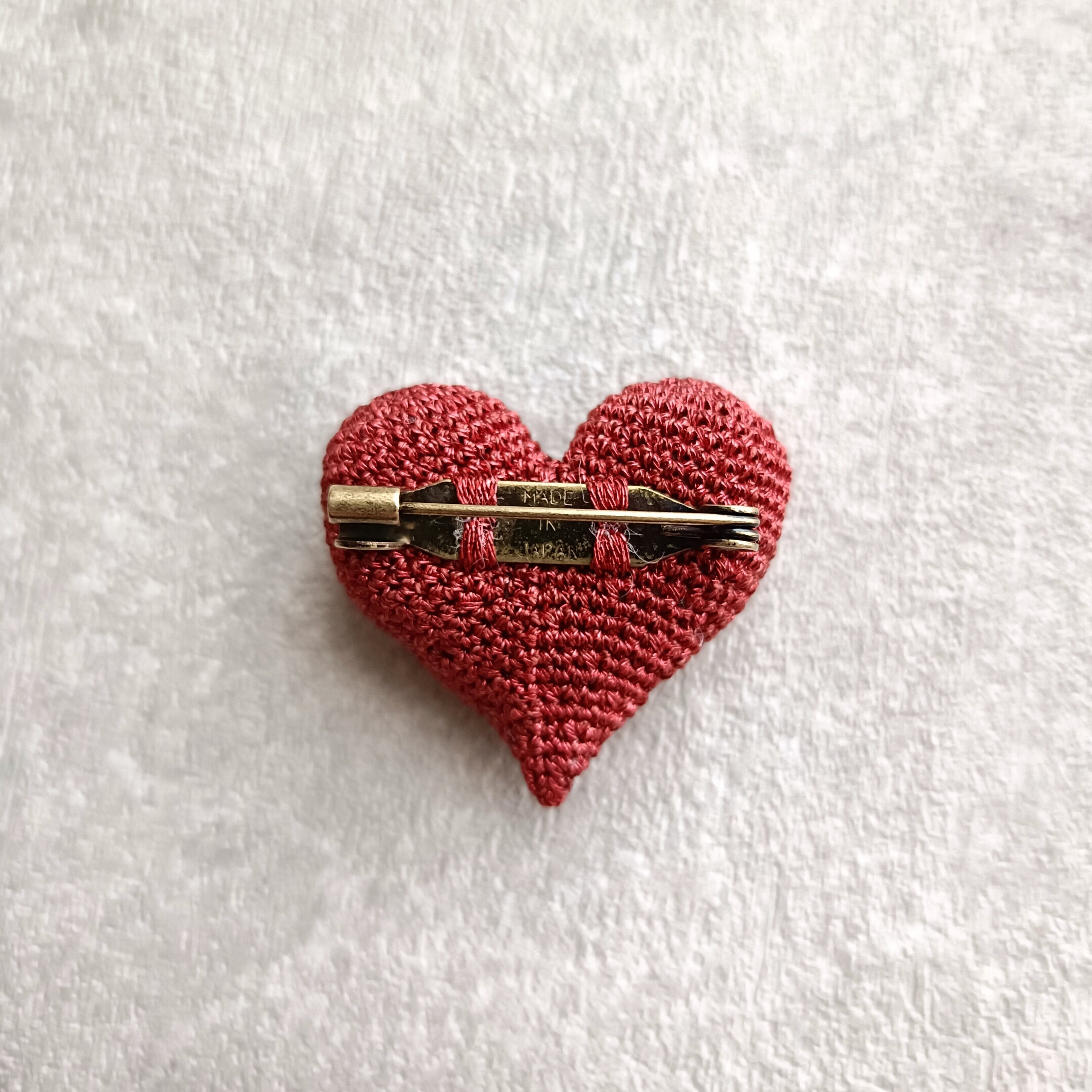 ふっくらとかわいいハート型のブローチ。